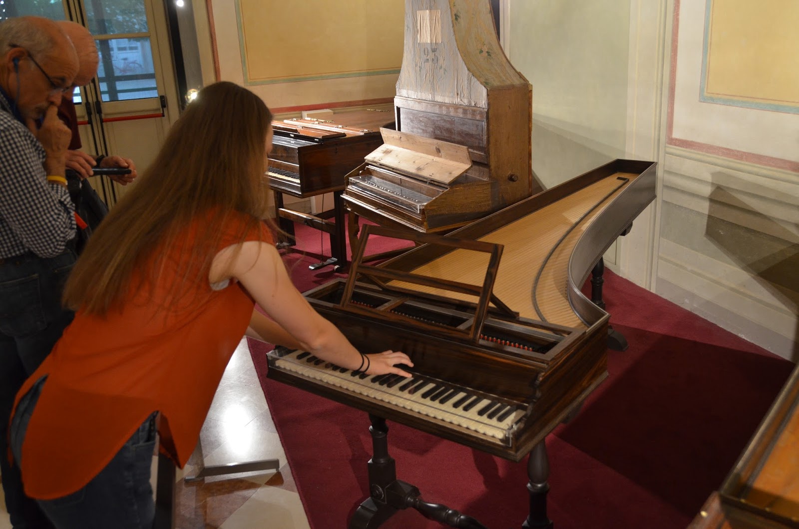 Erika really wanted to play the harpsichord, but it was under glass.