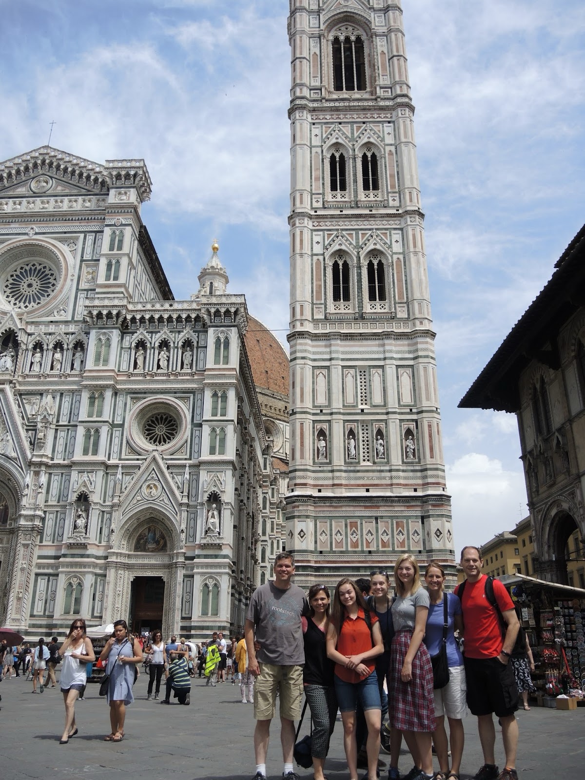 Here we are standing in front of Giotto's Campanile (bell tower), with the Duomo di Firenze on the left.