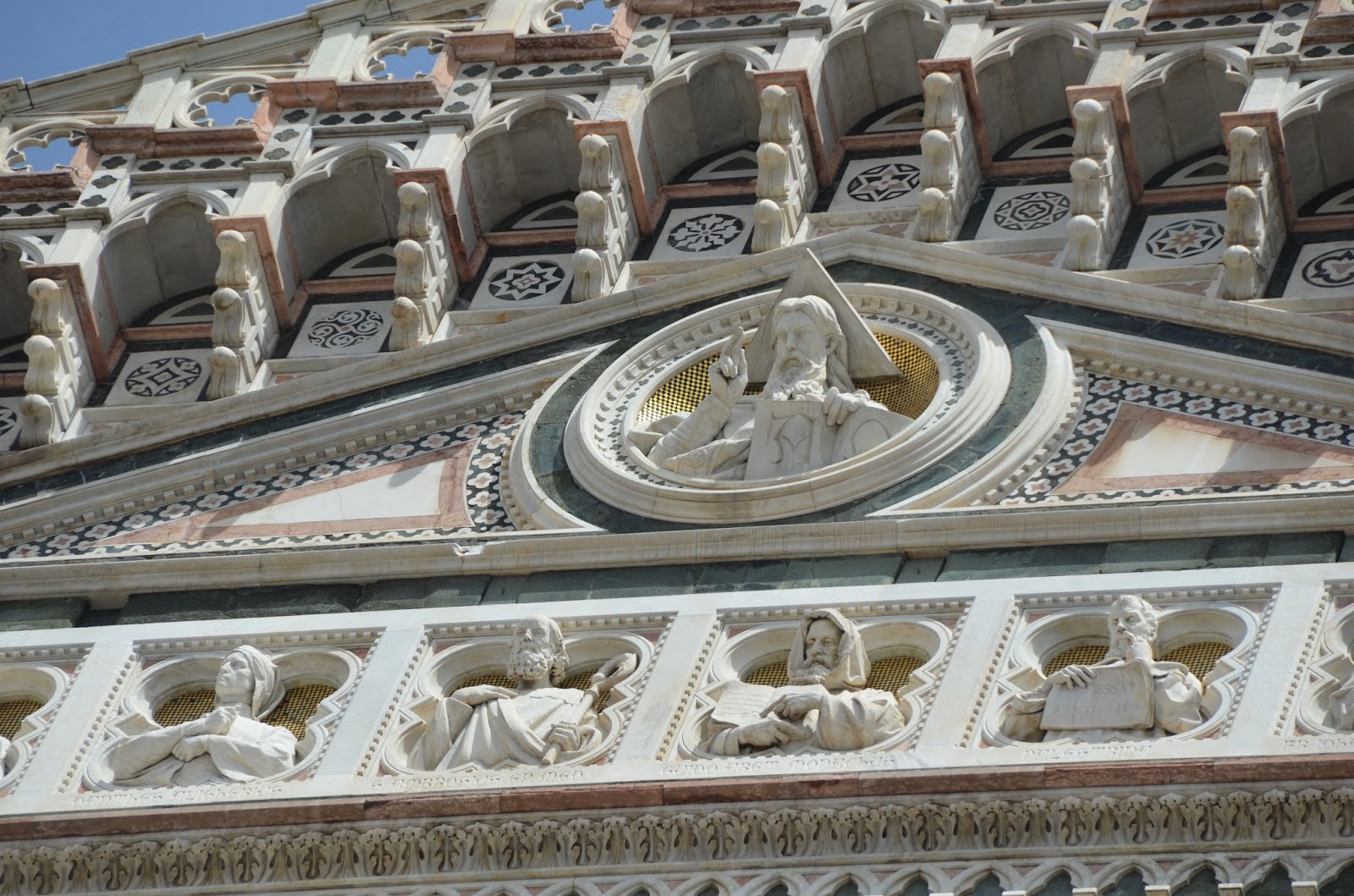 The top features sculptures of famous people from Florence like Michelangelo.