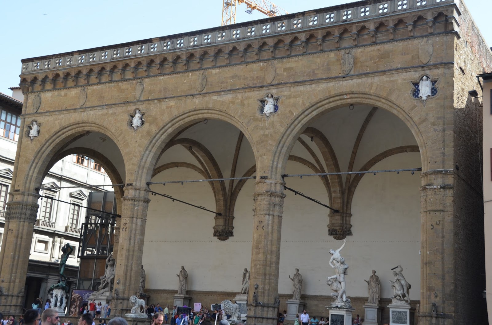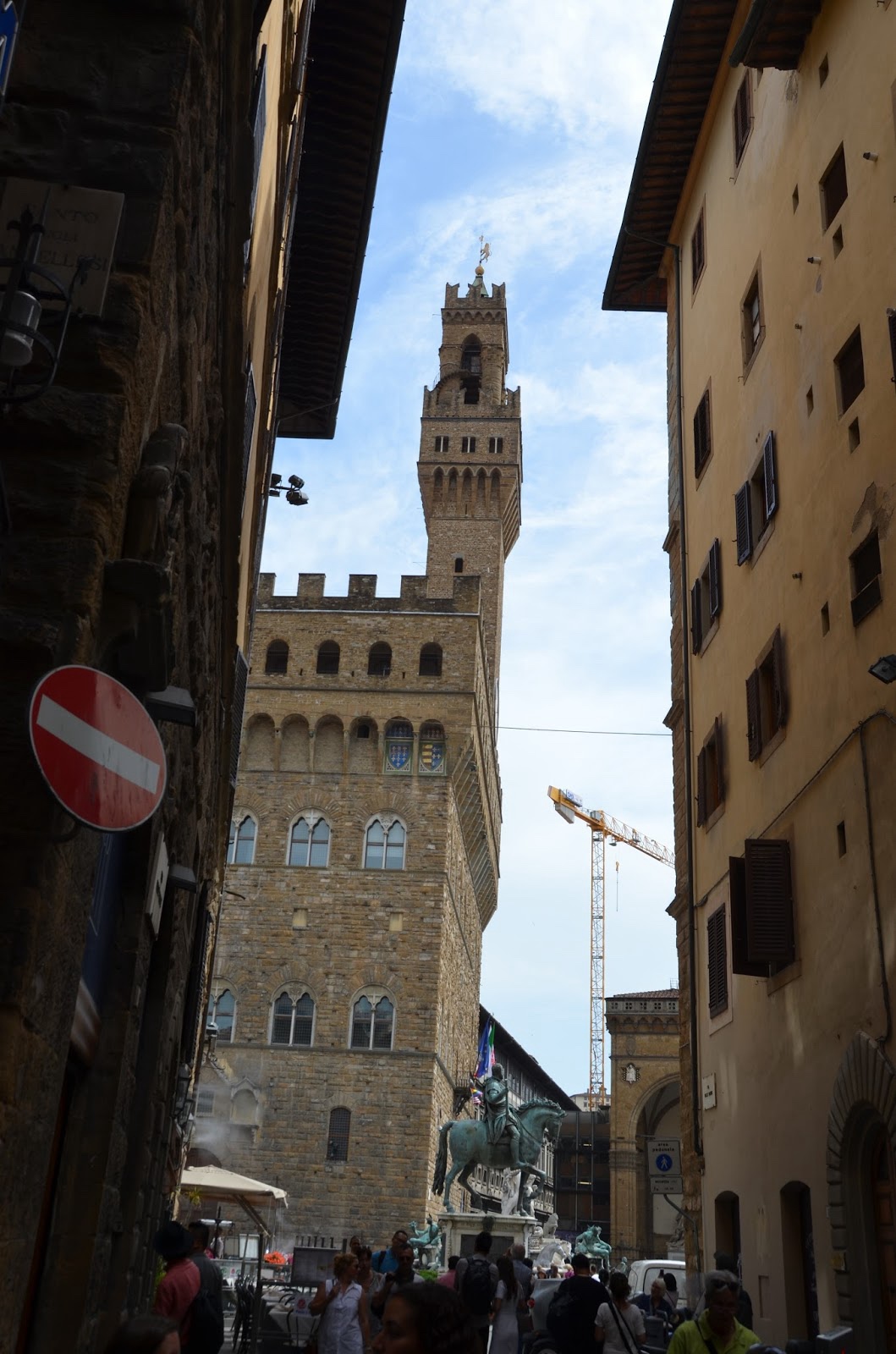 Here you can see the bell tower atop the Palazzo Vecchio ("old palace"), which was completed in 1332. It was renamed the "old tower" in 1550 when the duke moved to the Pitti Palace.