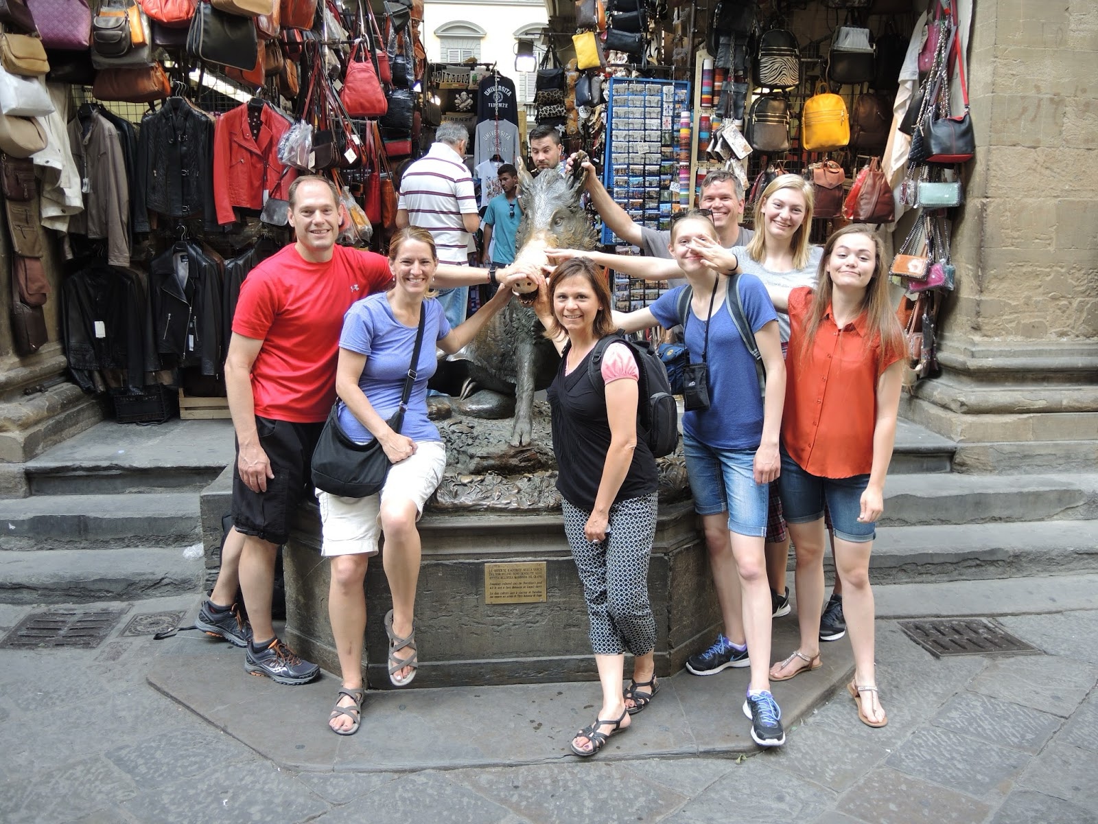 At the "piggy market", the tradition is to rub the nose of the boar, and put a coin in its mouth. If the coin falls into the grate, then it means you'll return to Florence. Either way, you're out a coin.