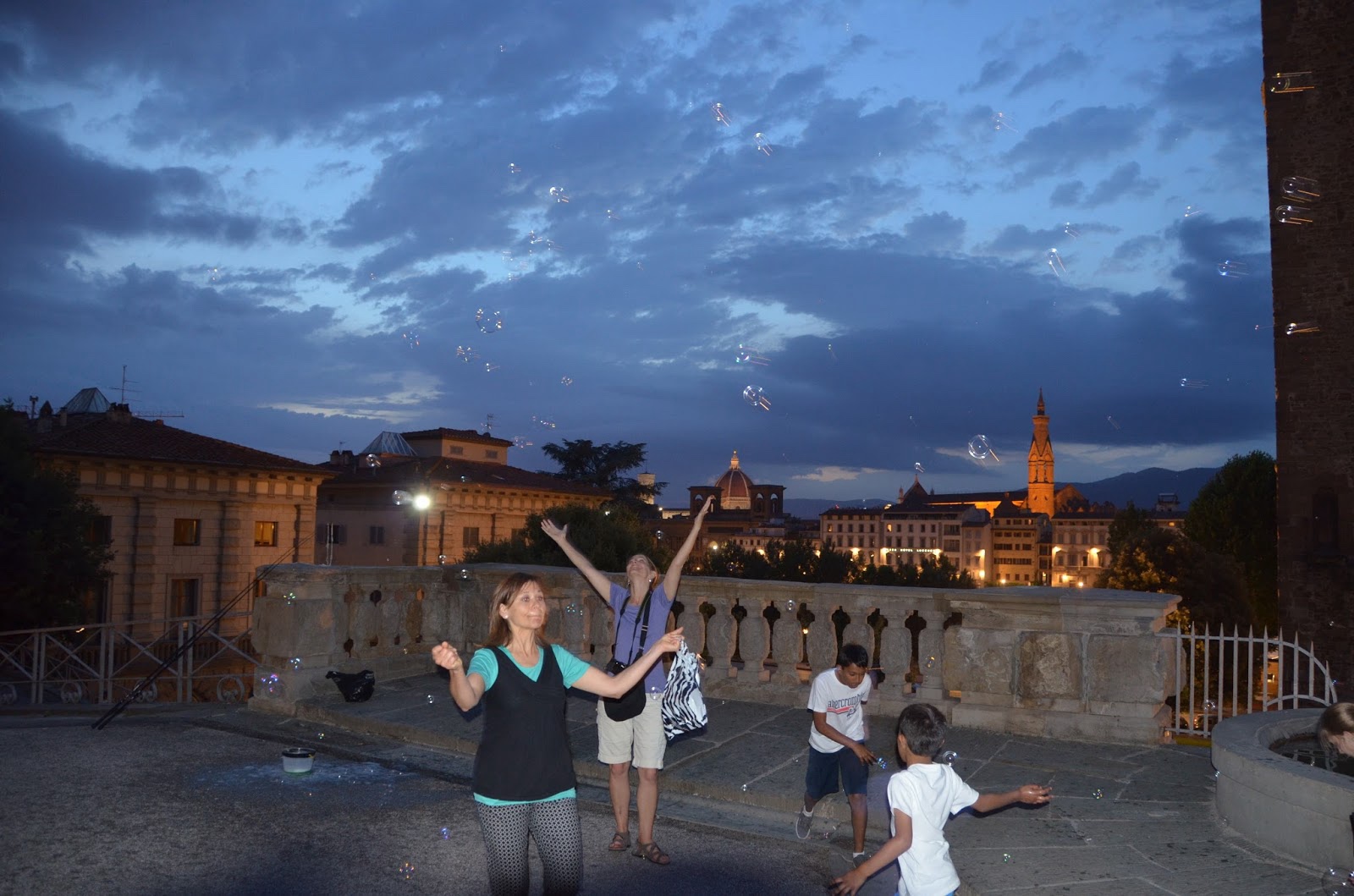 A guy was blowing bubbles as we hiked up the trail to Piazza Michelangelo.