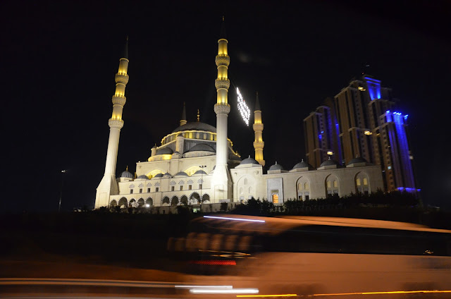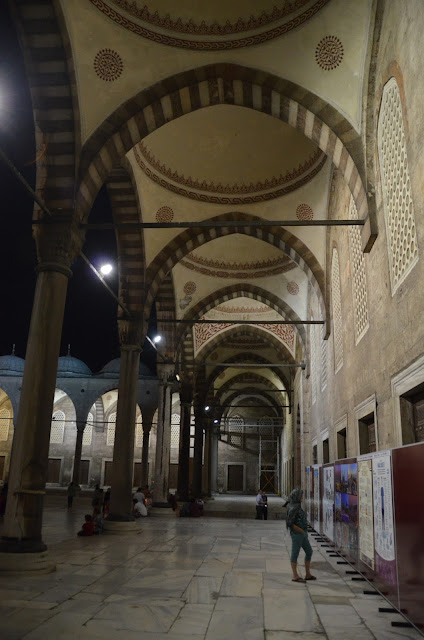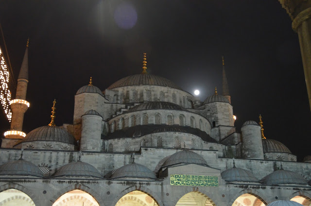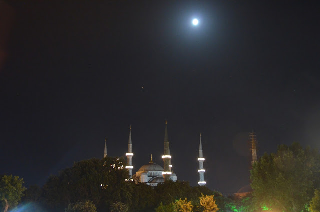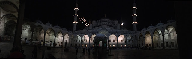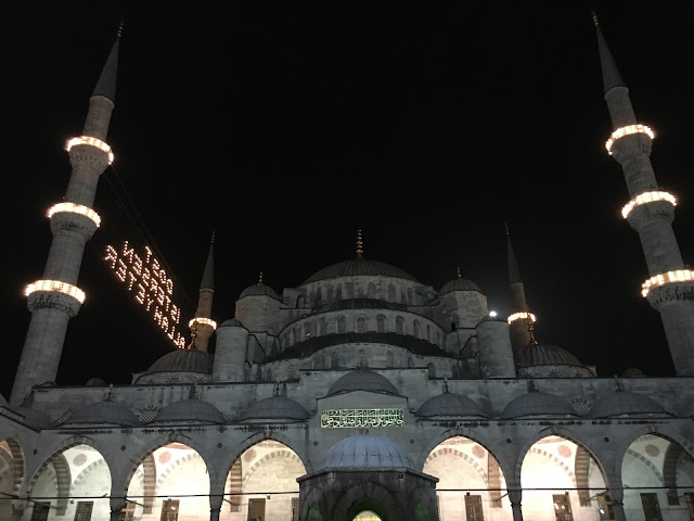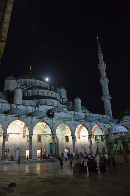 The Hilton we stayed at was the nicest place we had stayed on our whole trip (and "free" because of points from a Hilton credit card). It was about 10:30 p.m. by the time we got settled there, but I really wanted to go see the Blue Mosque, which was one mile down the main road from our hotel, and everyone said that it was plenty safe, so Linette and I went off on an adventure. Erika decided to stick around the hotel so she could talk with family and friends and because she was exhausted. (We were touring Venice all morning that same day, after all).