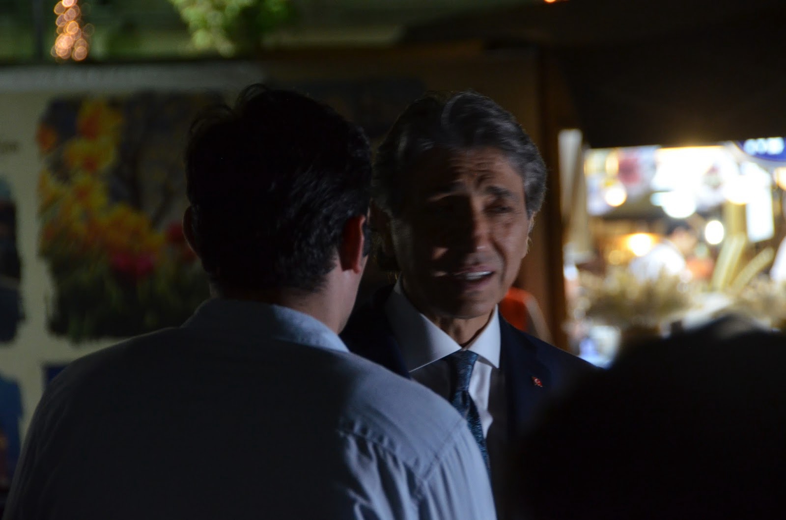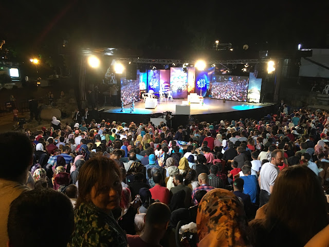 Across the plaza, a huge crowd gathered for a live broadcast of a TV show featuring Dr. Nihat Hatipoğlu, who is a famous scholar and theologian.