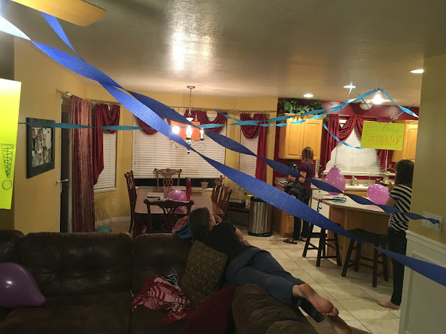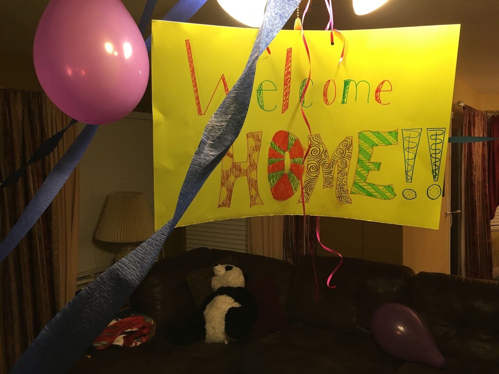 The kids picked us up at the airport, and it was wonderful to see them again! We found that they had decorated the house with streamers and signs.
