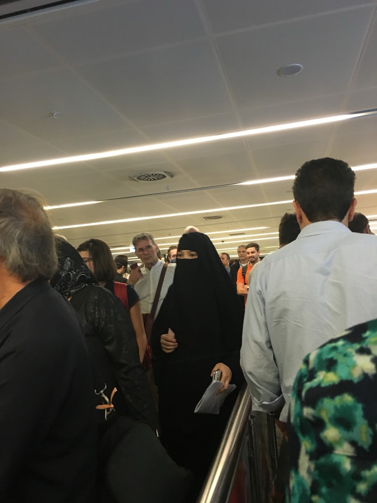 There was a dress code to get in, which included long pants for men and a head covering for women. So we went out and got Linette a hijab or something like that, and went in.