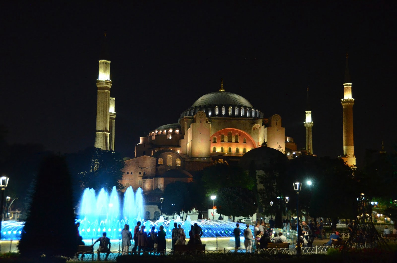 Here is what the Byzantine cathedral / Ottoman mosque / current museum, Hagia Sophia, looks like in the day.