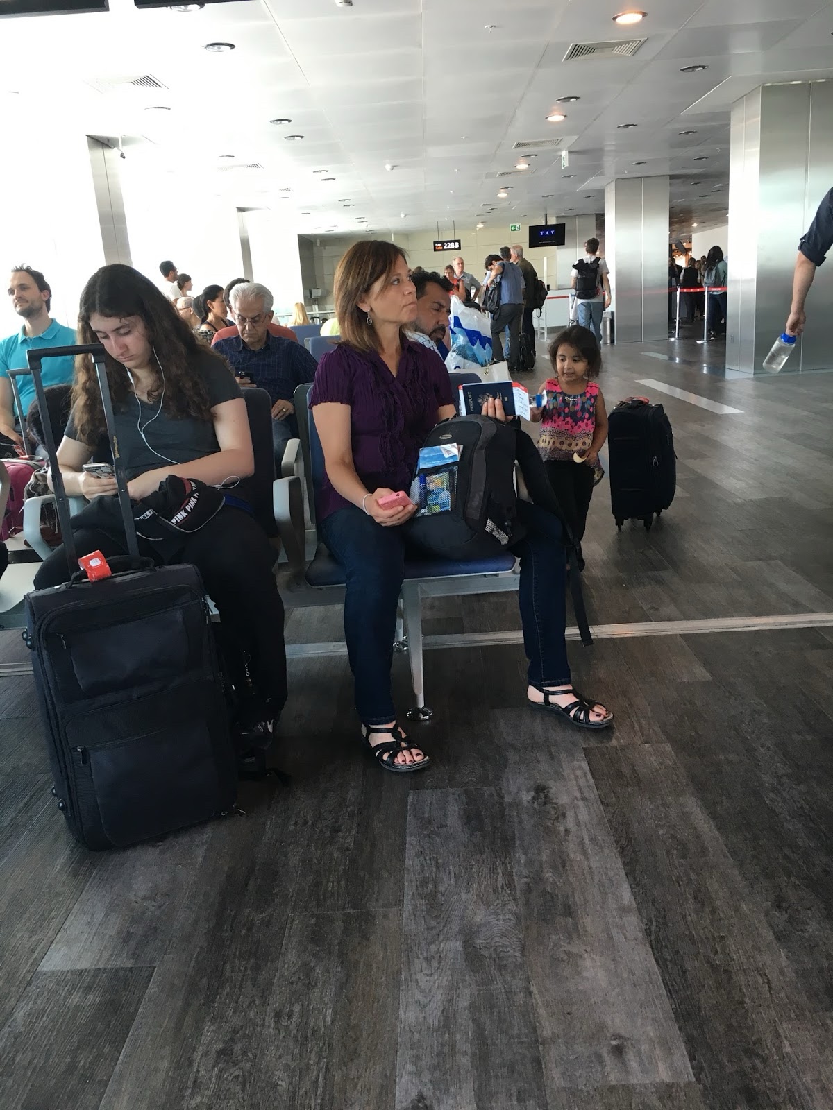 Security there was intense. They scanned our bags 3 times, checked our passports 6 different times, and Erika got pulled into an extra security check line that went really slowly. So although we got to the airport over two hours early, Erika was still stuck in line with 10 minutes to go. I stayed by the boarding entrance to make sure it didn't close without us and to stall if necessary. Fortunately, Erika made it through.