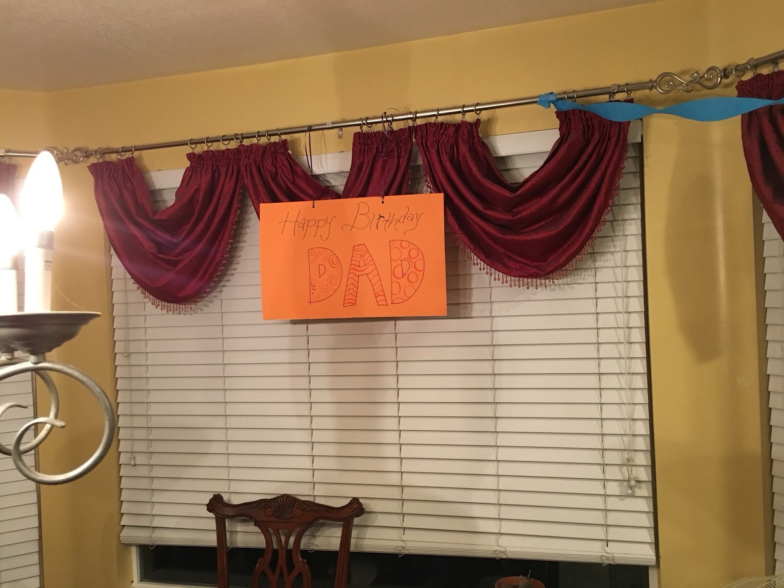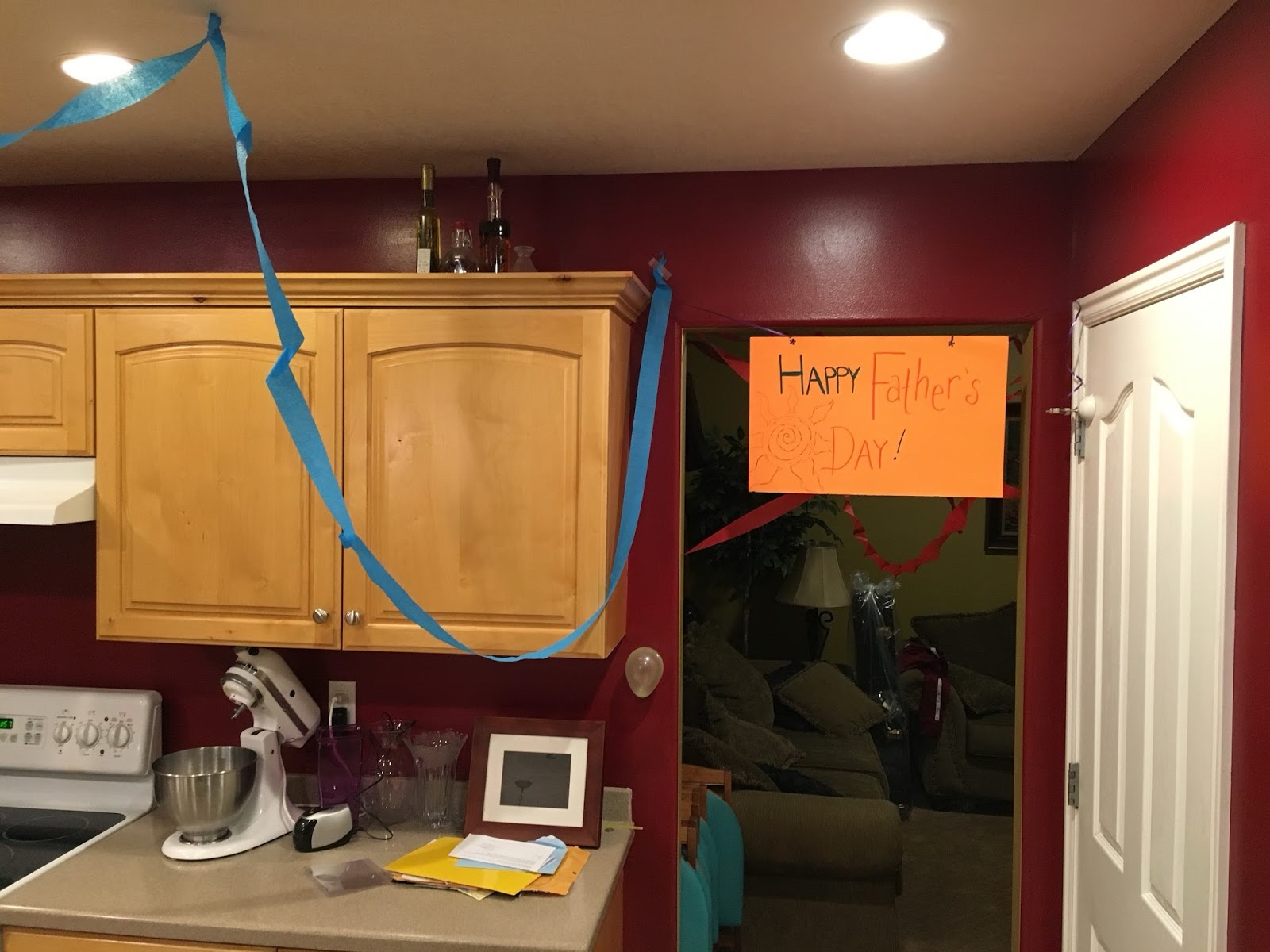 There was a sign saying "Happy Birthday, Dad", because of my birthday a week before.
