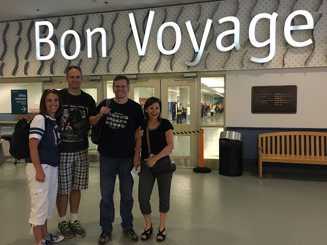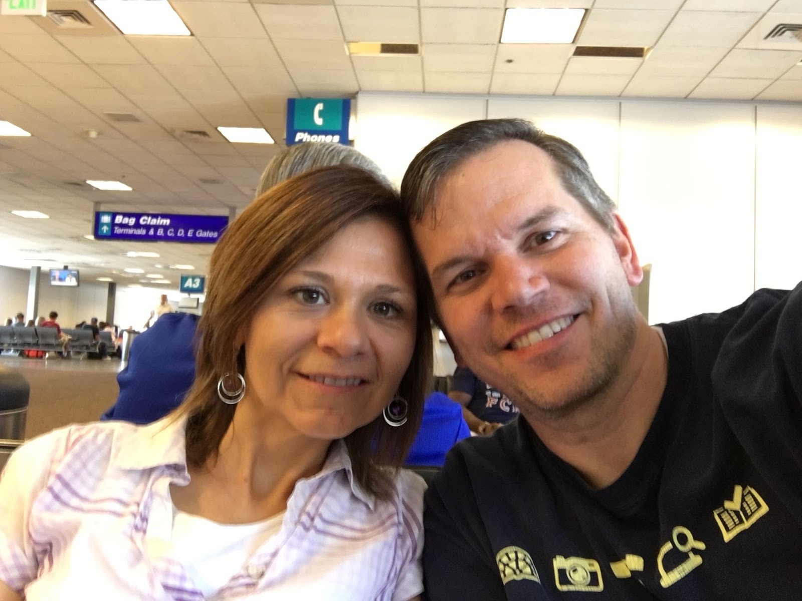 We traveled to the airport with our friends Steven and Melissa Elmes. It turns out that Steven is taller than Linette.