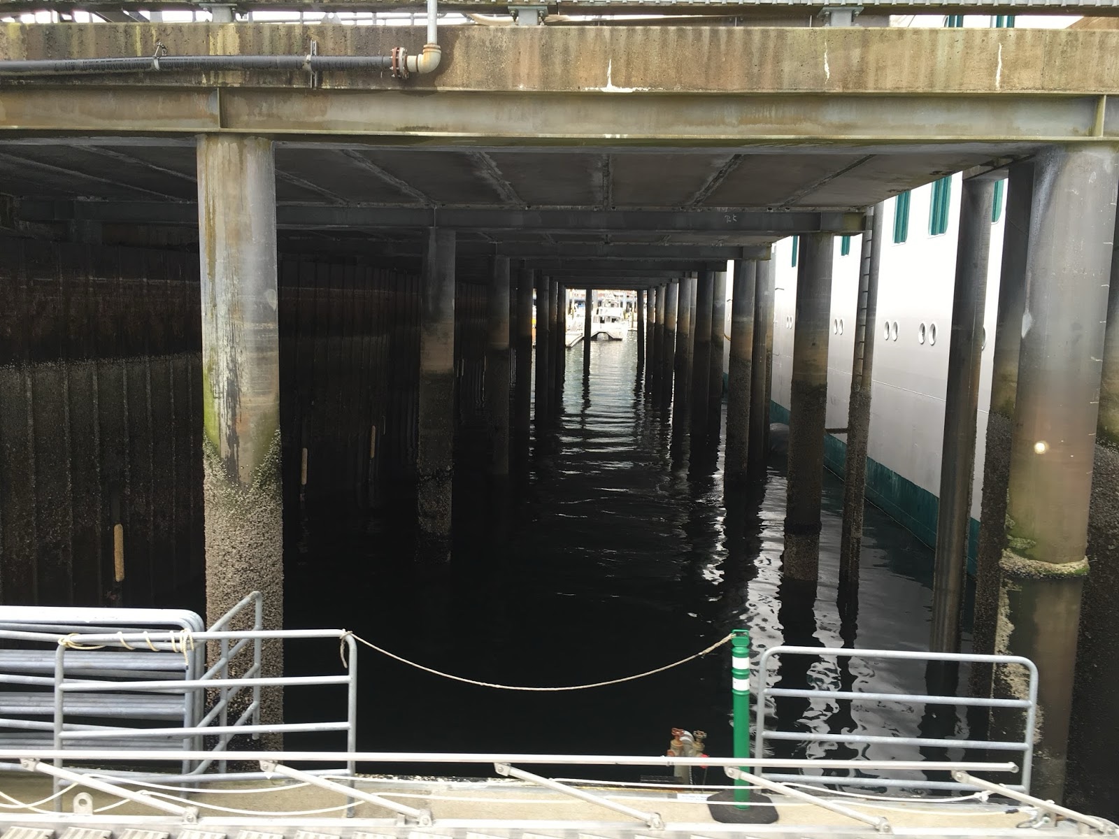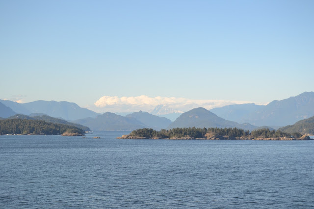 As the ship pulled away, we could see the skyline of Vancouver, and the beginnings of the forested mountains. I thought it was awesome that there was a Chevron station on an island for the boats.