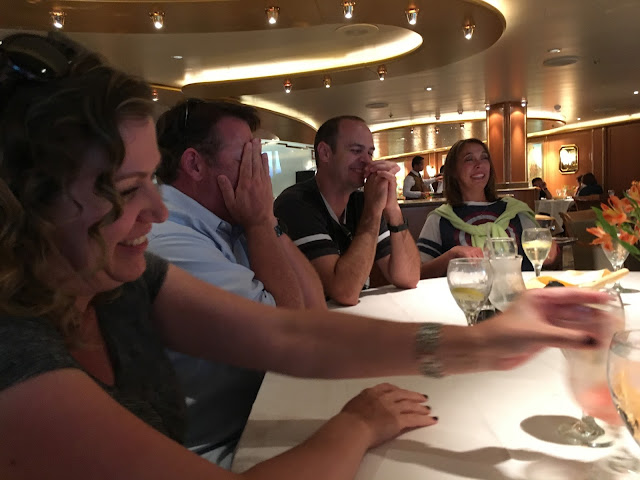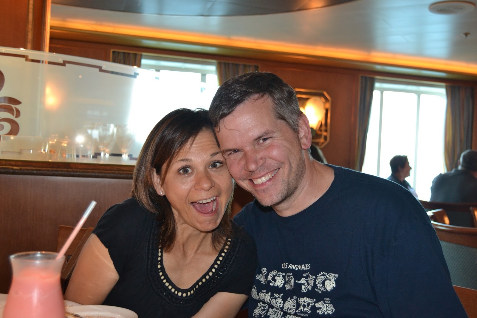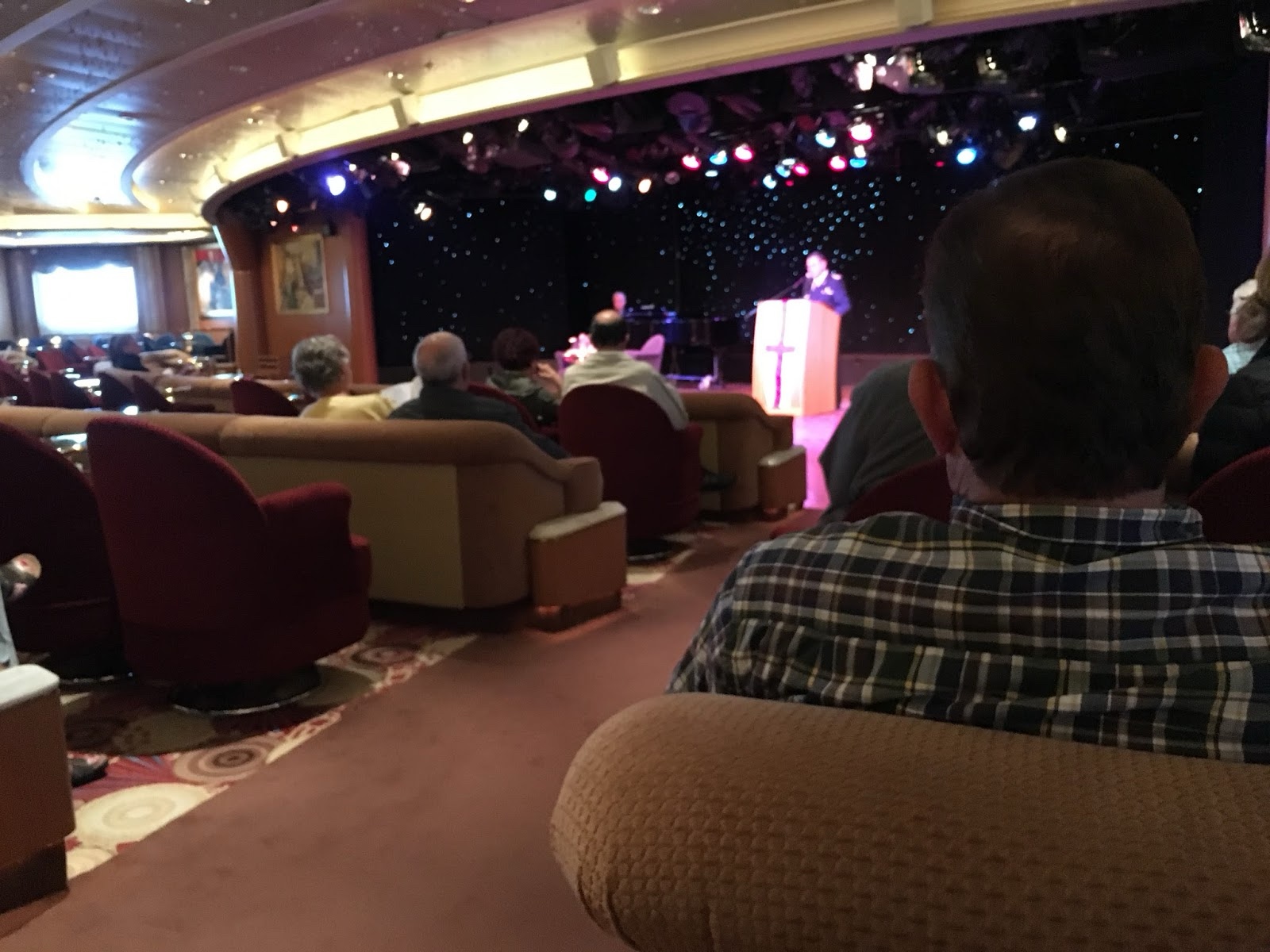 Sunday morning, Linette and I sat in on the interdenominational church service, led by our captain, who was from La Spezia, Italy, where we had gone to church a month before. We had fun talking to a couple from Texas that was sitting in front of us.