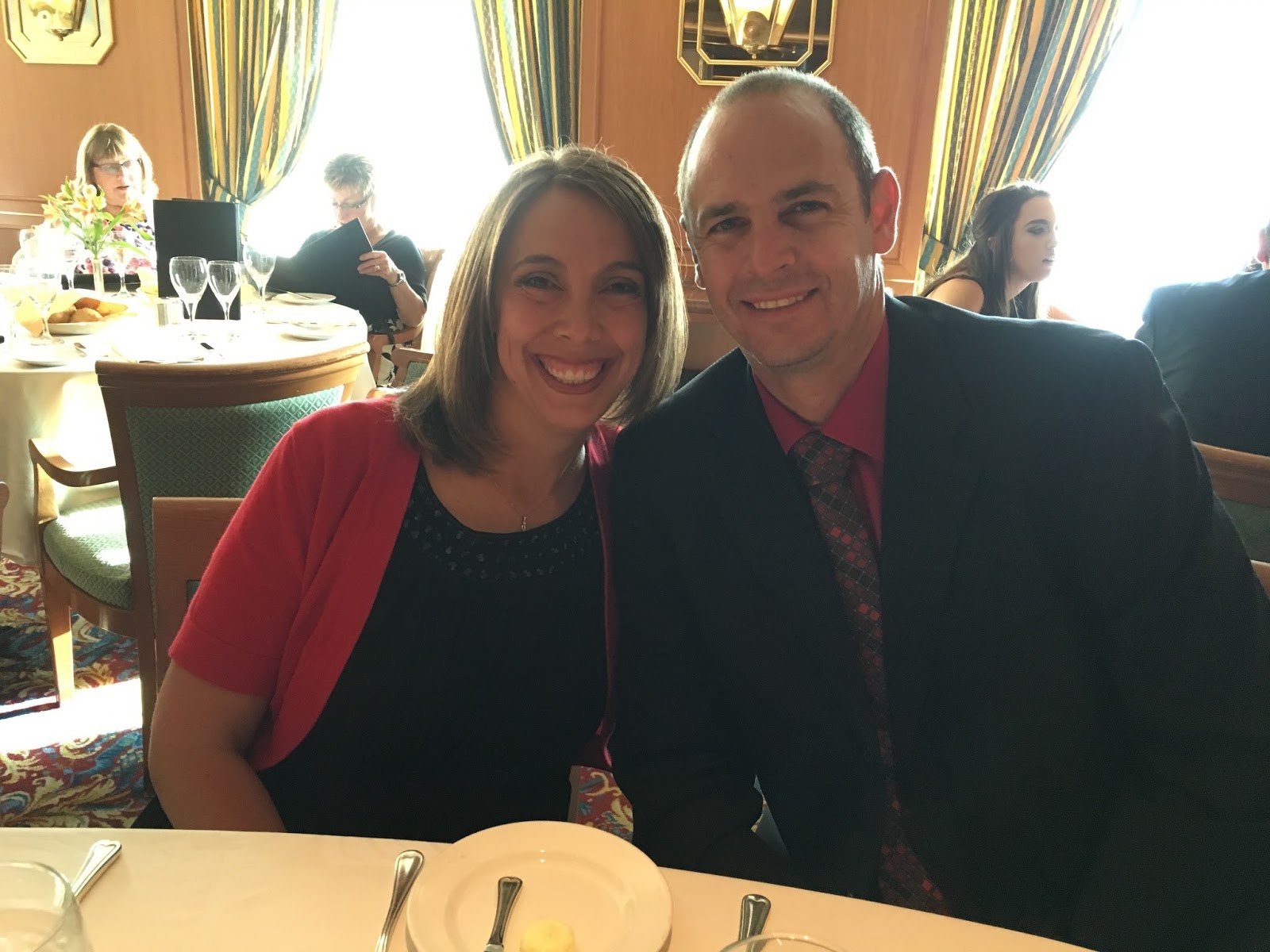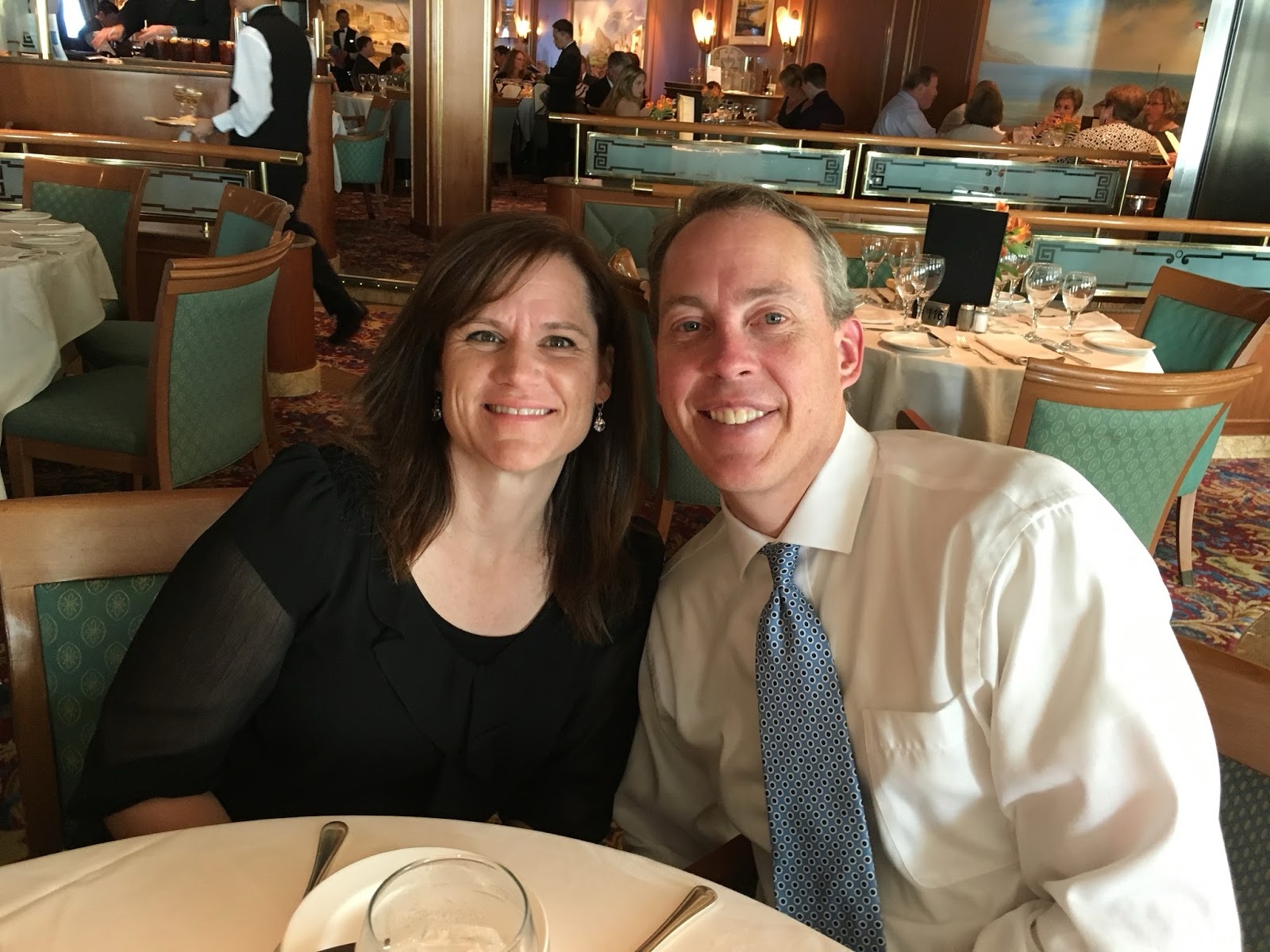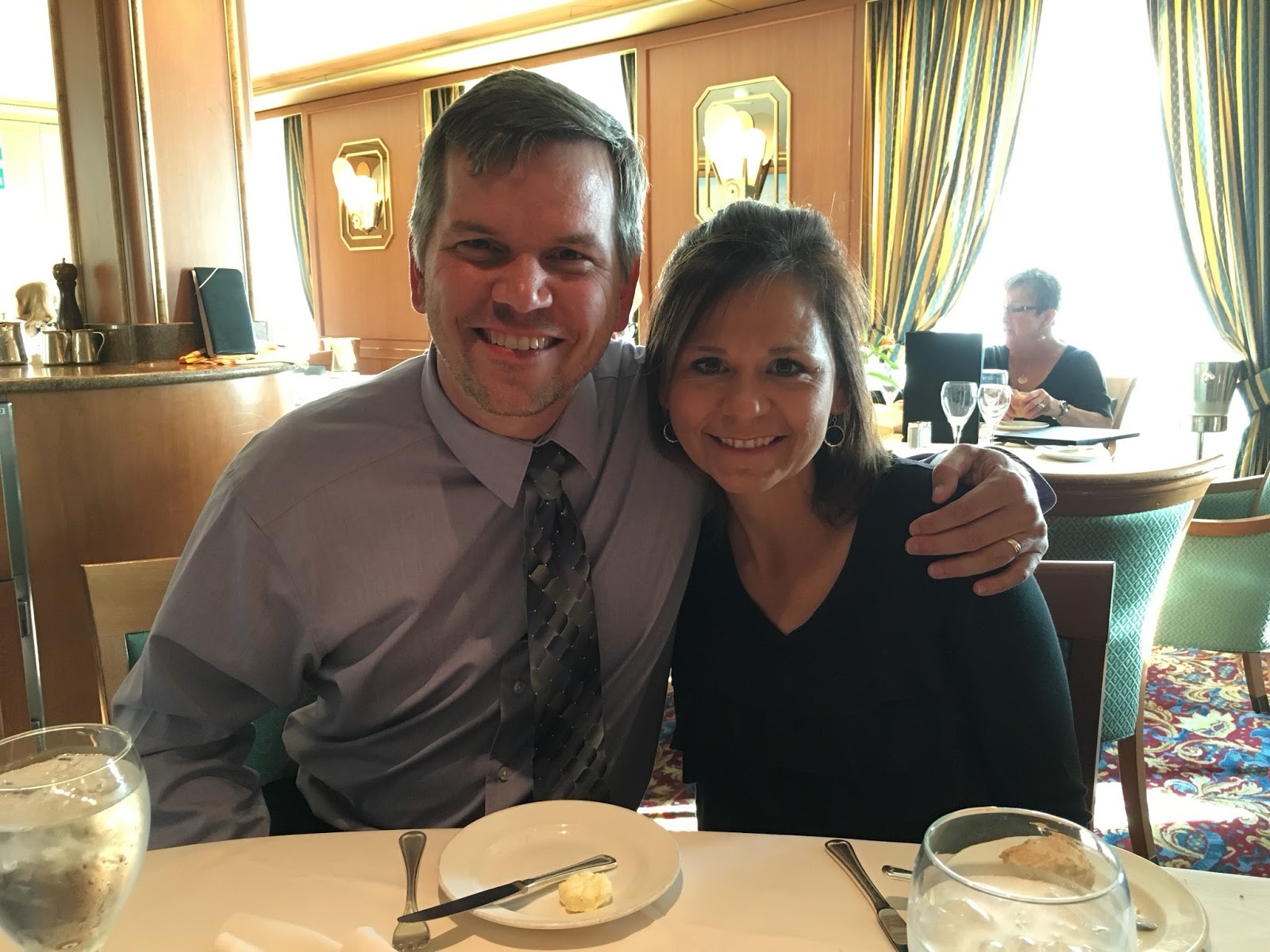 Sunday morning, Linette and I sat in on the interdenominational church service, led by our captain, who was from La Spezia, Italy, where we had gone to church a month before. We had fun talking to a couple from Texas that was sitting in front of us.