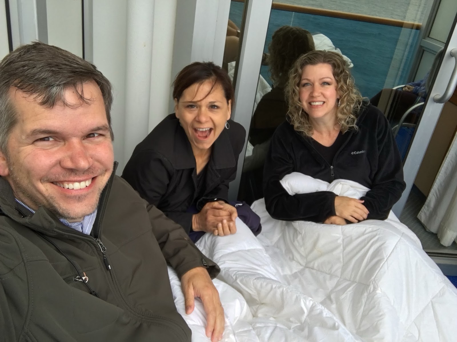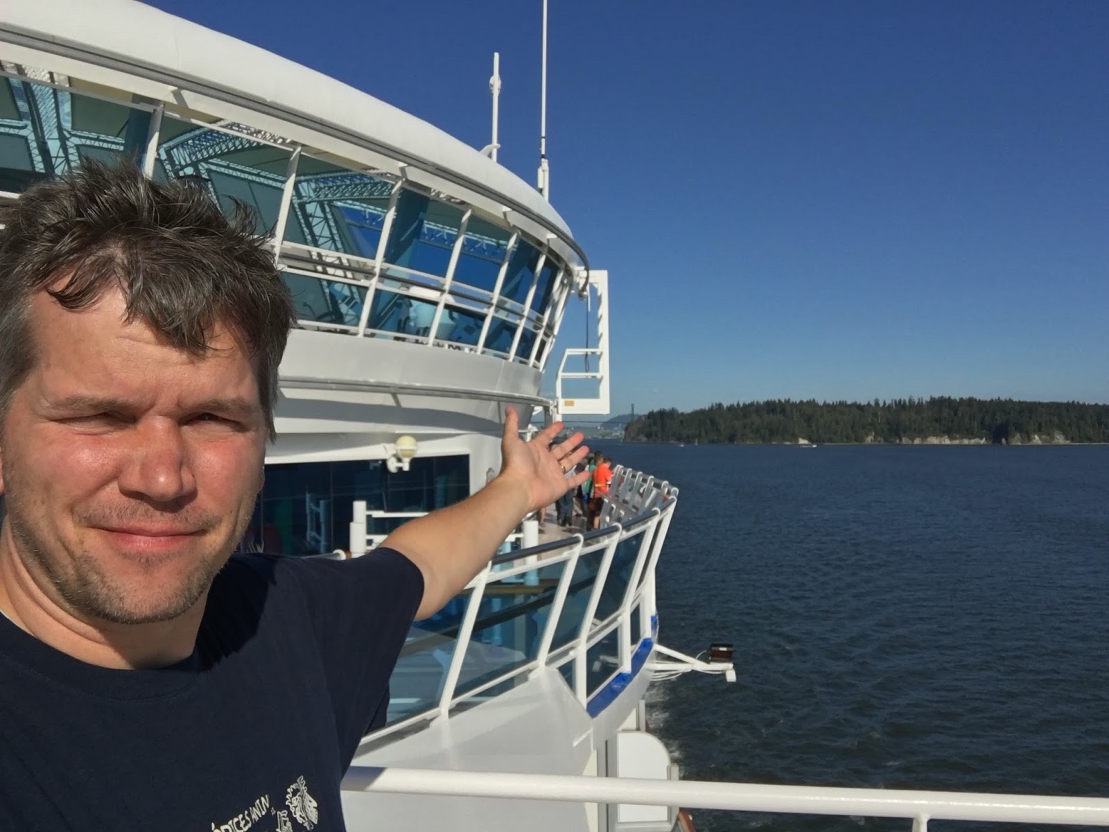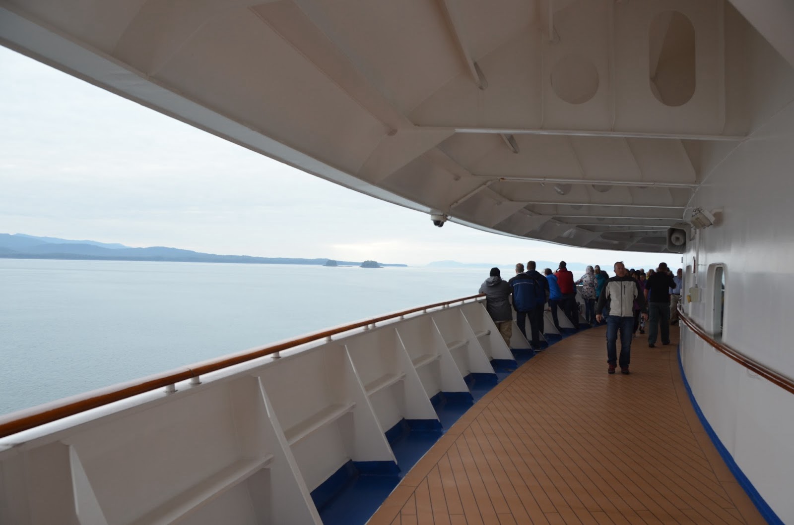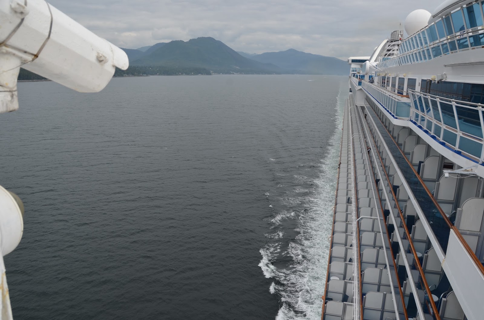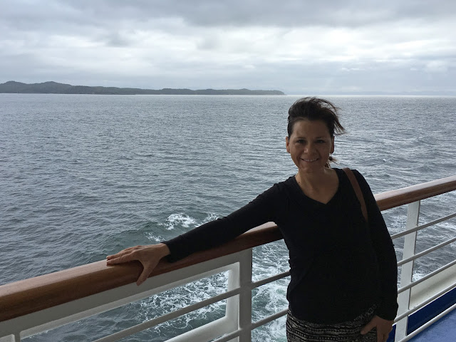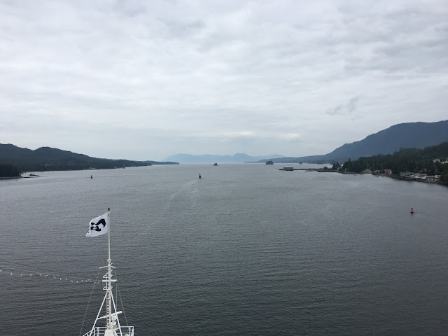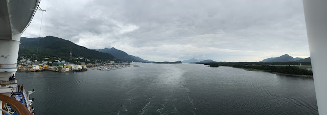 One of the cool things about the Alaskan cruise is that we were almost always between two bodies of land, so you had an almost continuous stream of beautiful views of mountains and forest, in addition to the water itself. And since we weren't on the open seas, the water was very smooth, which made it so sea sickness wasn't a problem.