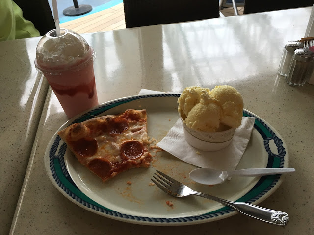 Pretty much every day I had pizza, a milk shake, ice cream and french fries for lunch when we were on the ship. Just to tide me over until dinner. They had different flavors of ice cream each day. Their worst was "cheese". Yep, grated cheddar cheese in vanilla ice cream. Yuck. But most flavors were great.