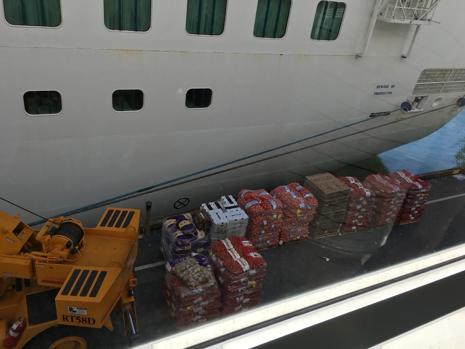 On the way onto the ship, we could see stacks of food being loaded on board. We did our best to make a serious dent in the supply.
