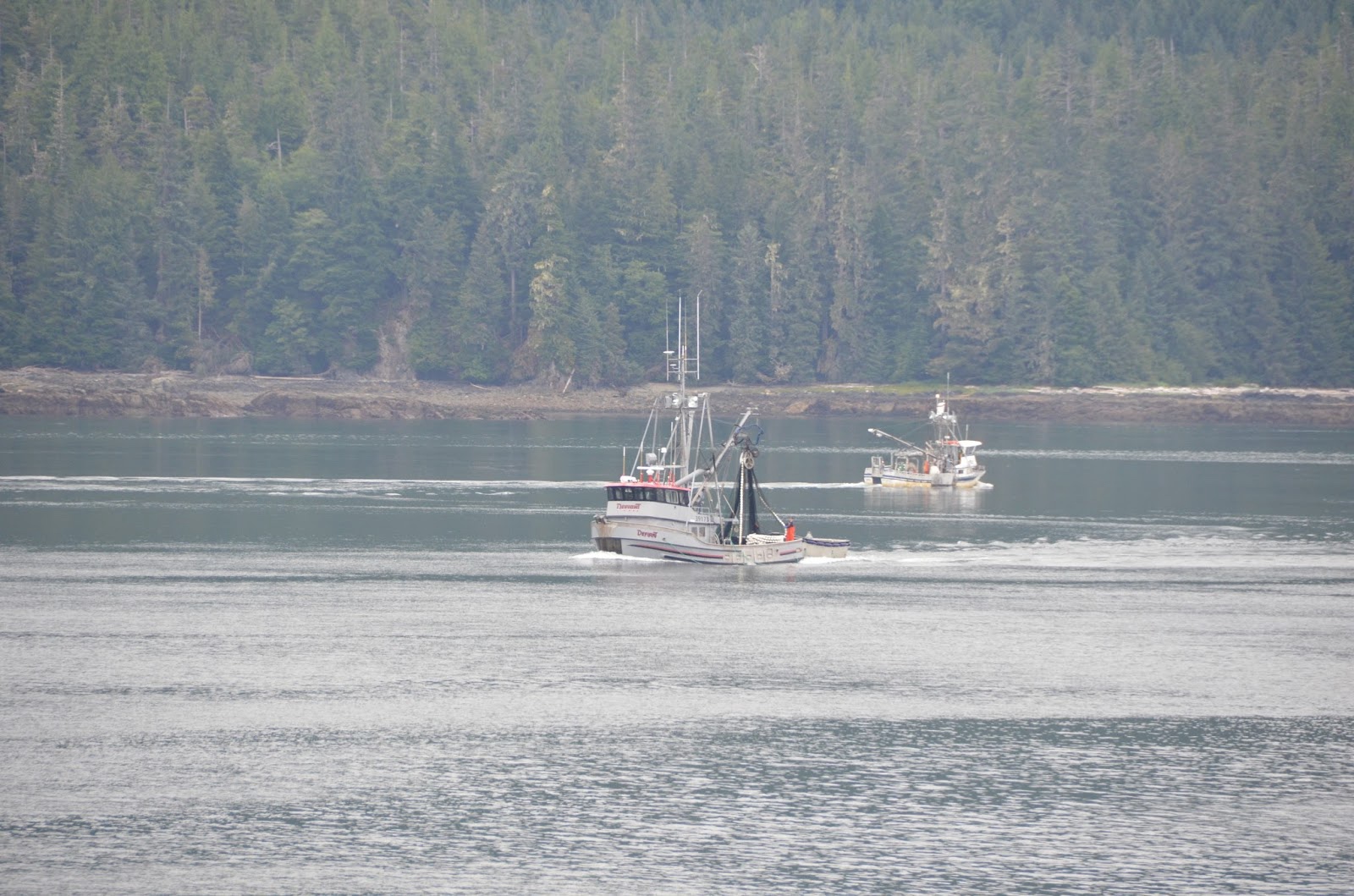 About that time, we crossed over from Canadian waters into Alaskan waters. Some people from Canada had been onboard to guide us through their waters, so they hopped onto a little boat that came to pick them up and sailed away.