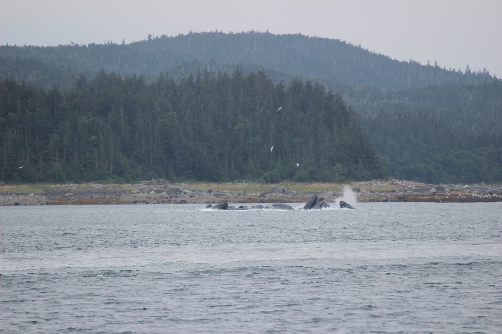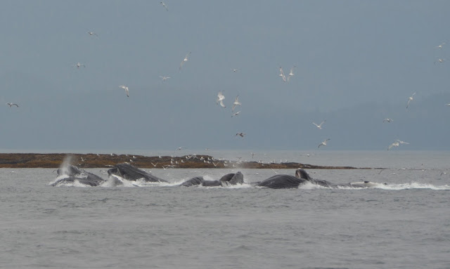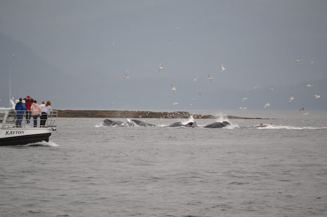 They repeated the cycle about every 10 minutes. Our guide said that bubble net feeding is a learned behavior, and that out of about 10,000 humpback whales living, only about 400 have learned it. So it was really cool to get to see 11 of them in action.