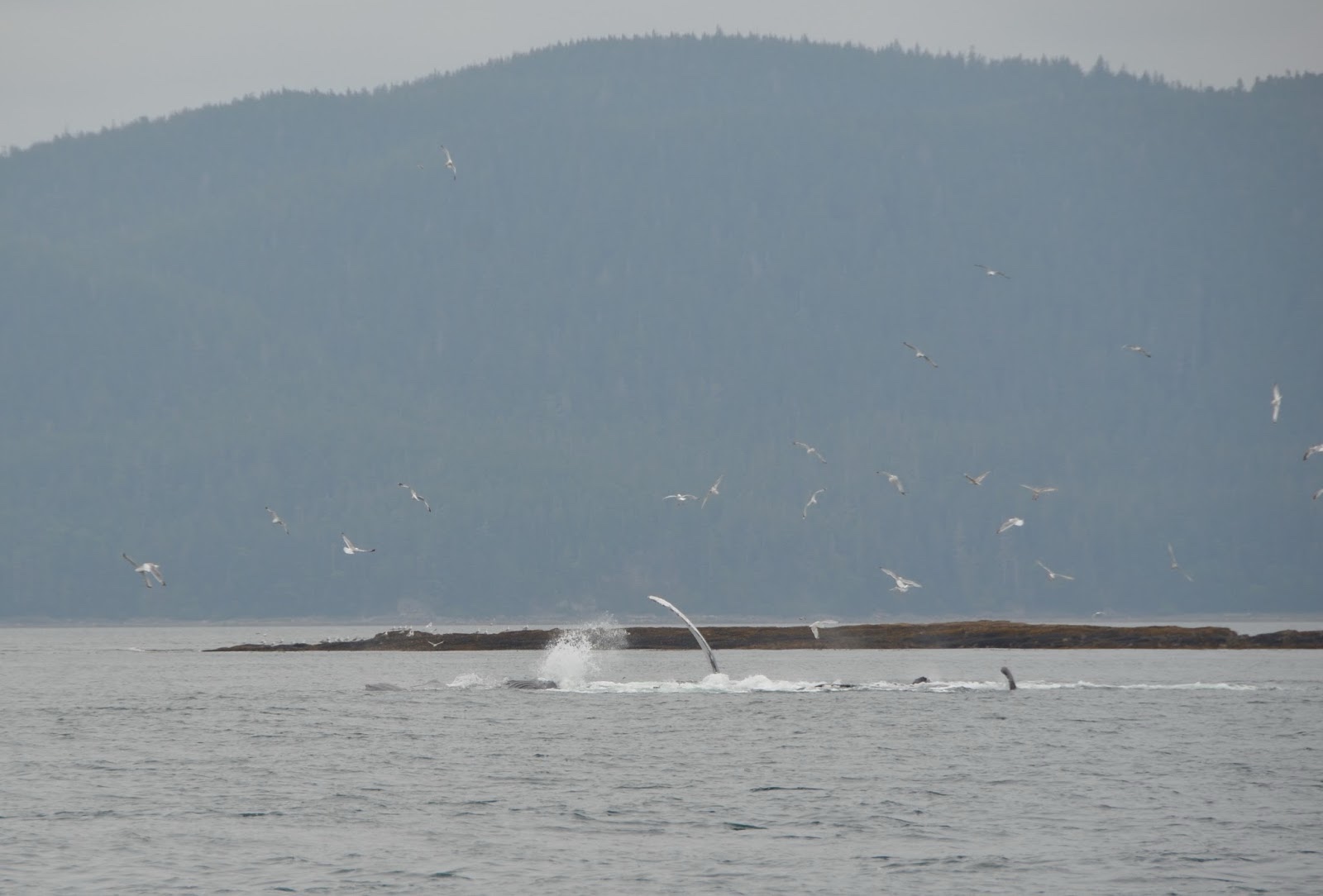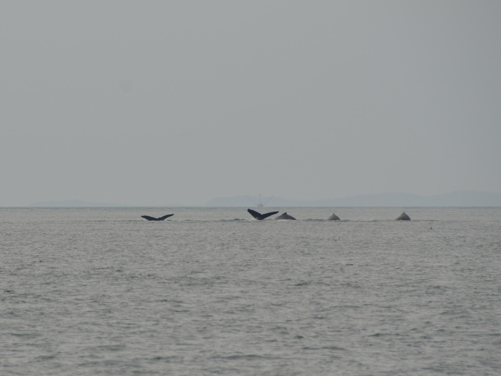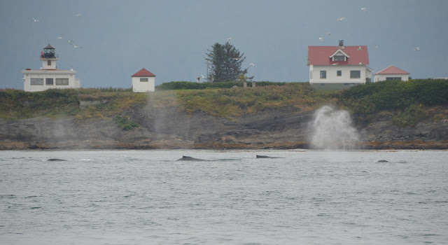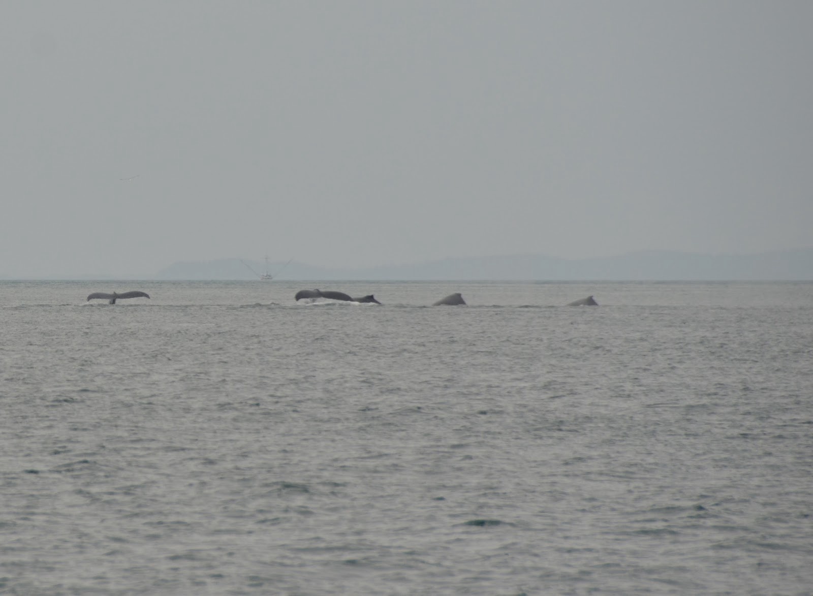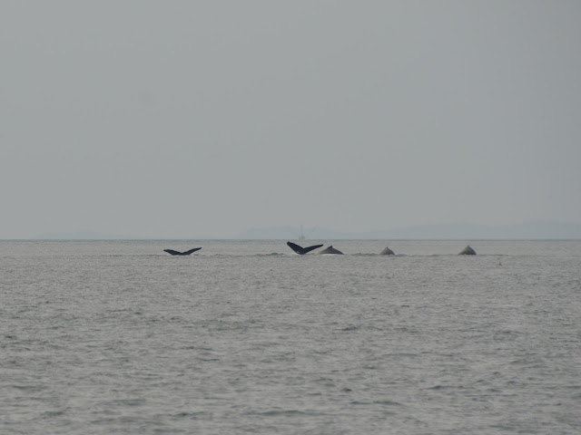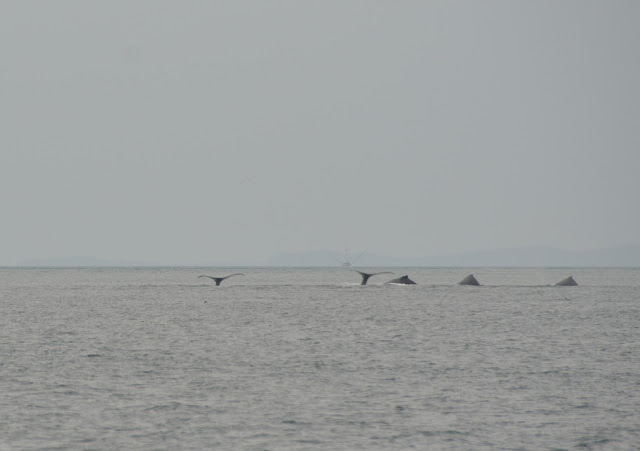 After they come up, they swam around, blew their spouts to get some air, and then took turns diving again.