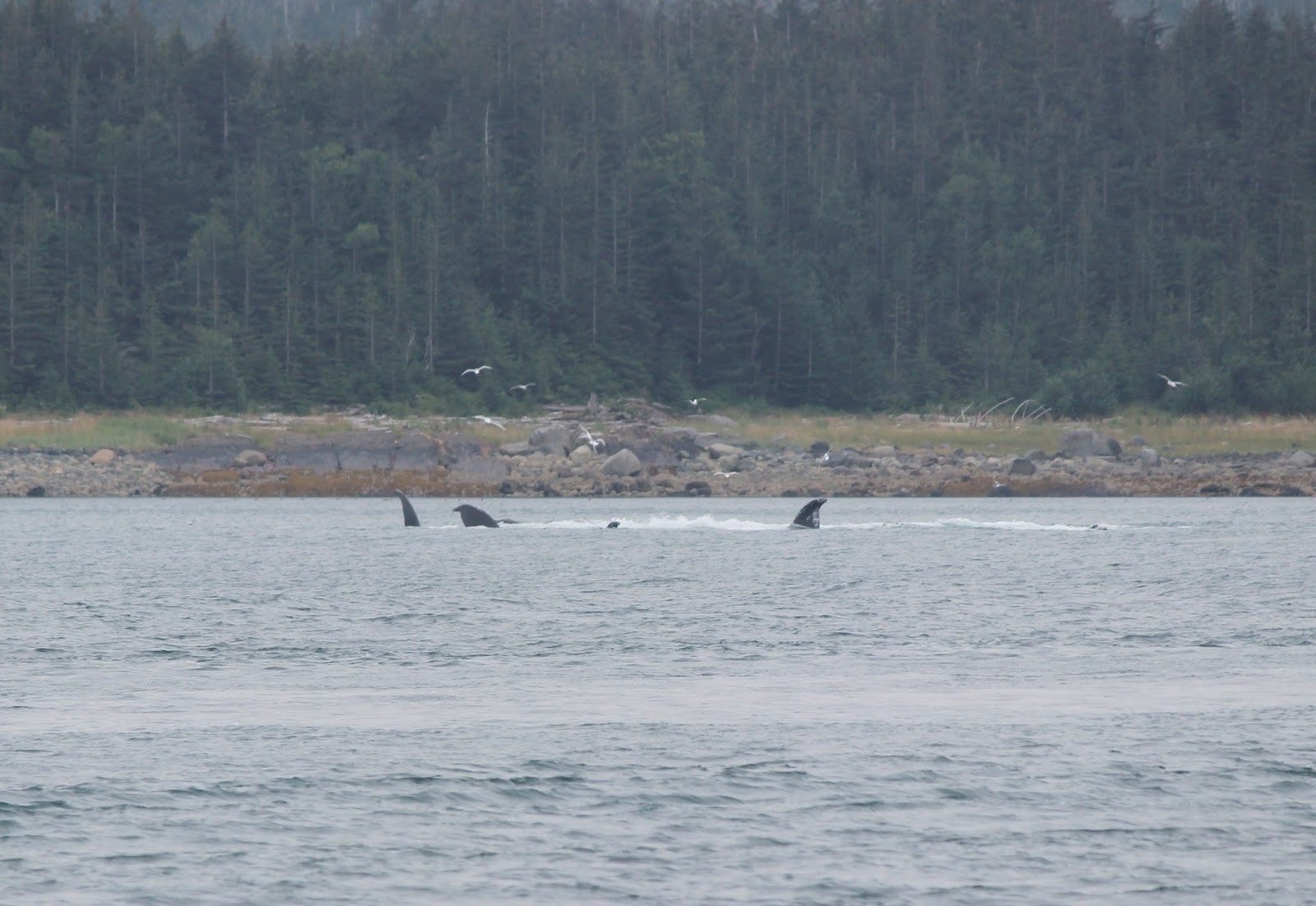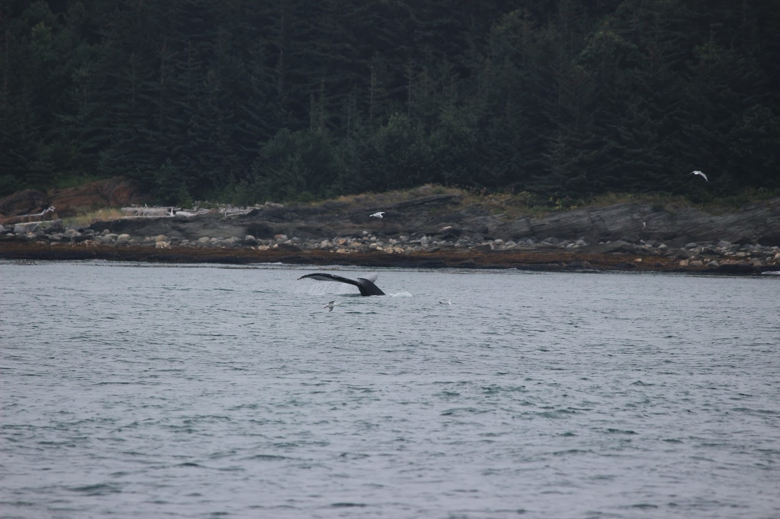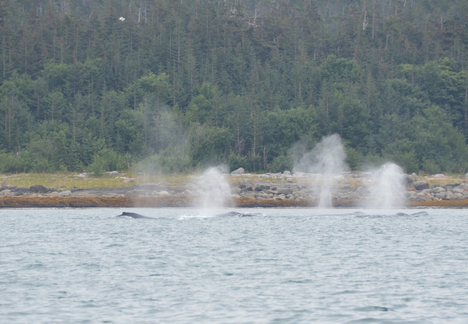 After they come up, they swam around, blew their spouts to get some air, and then took turns diving again.
