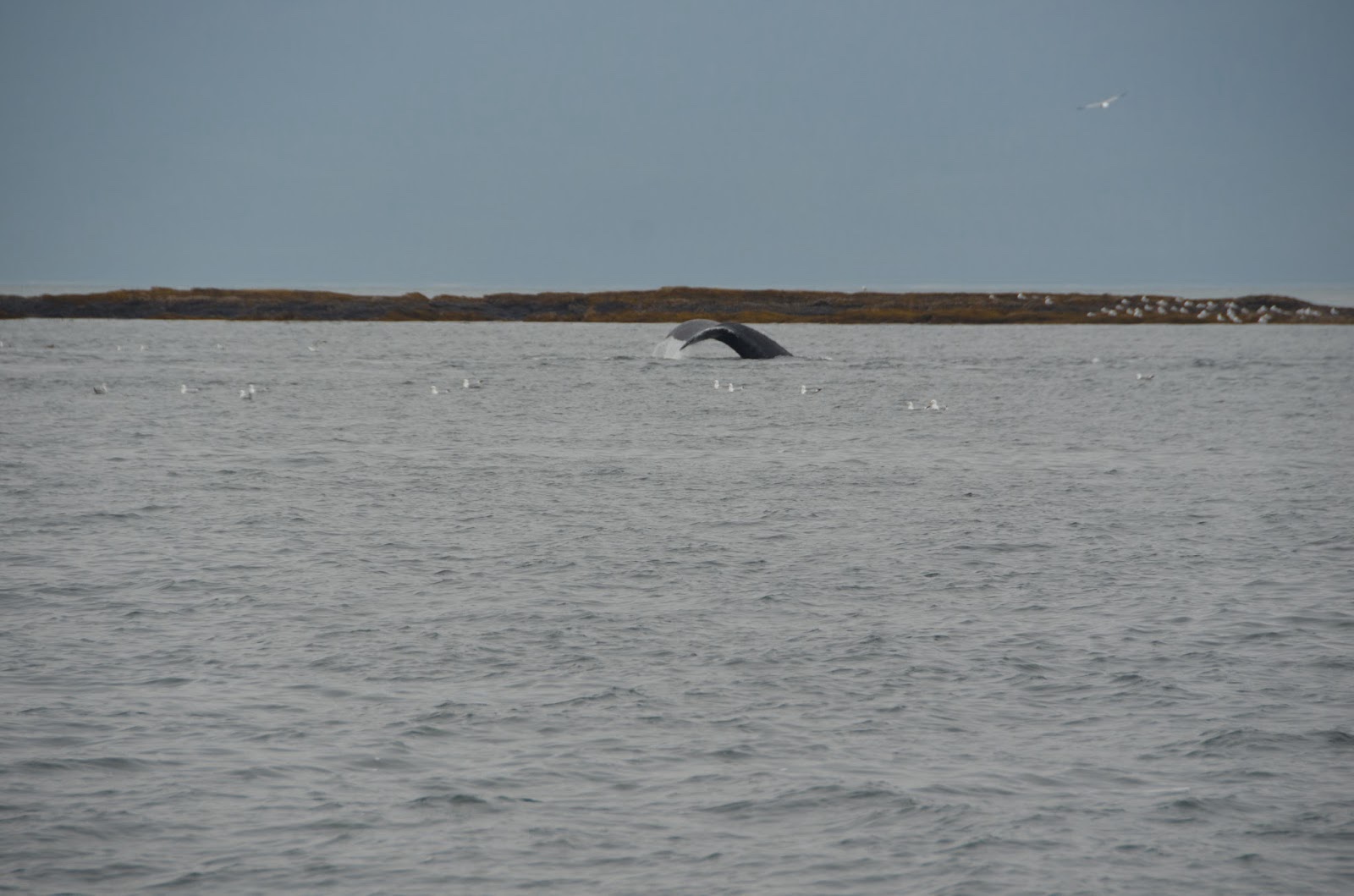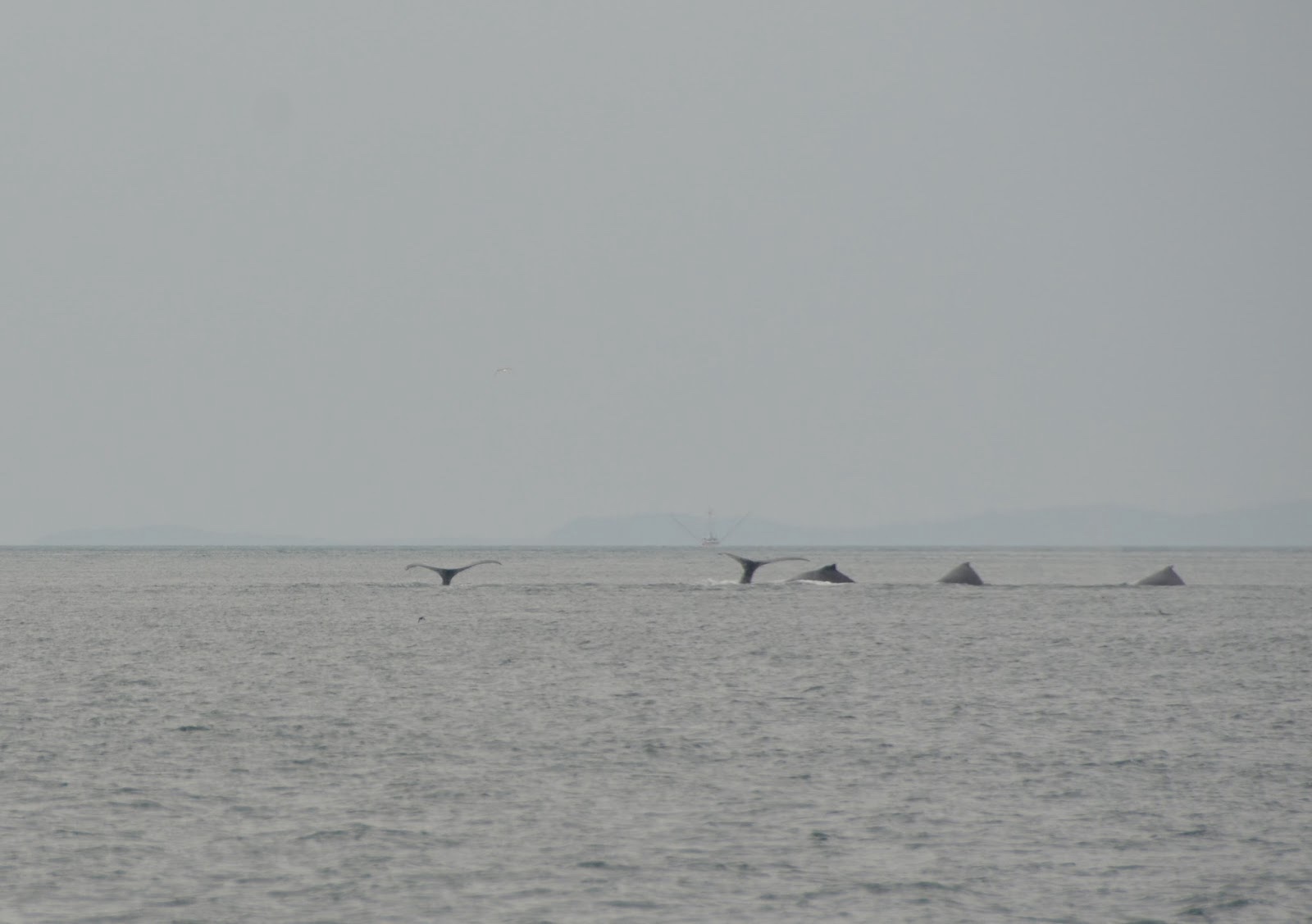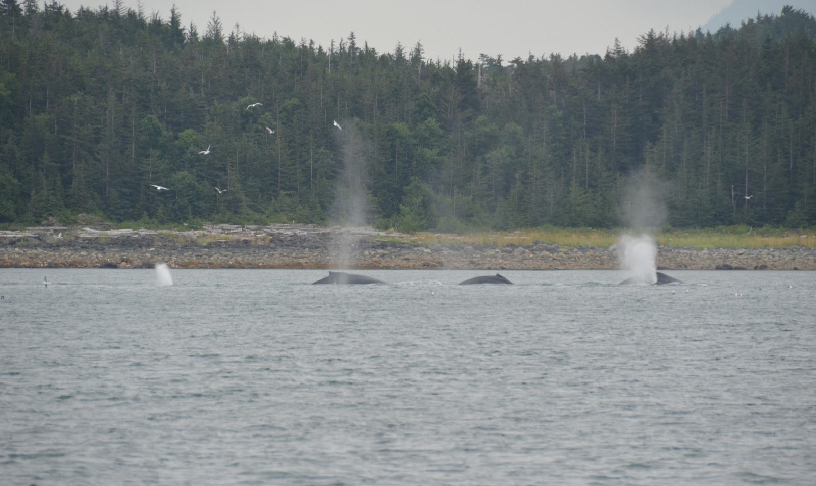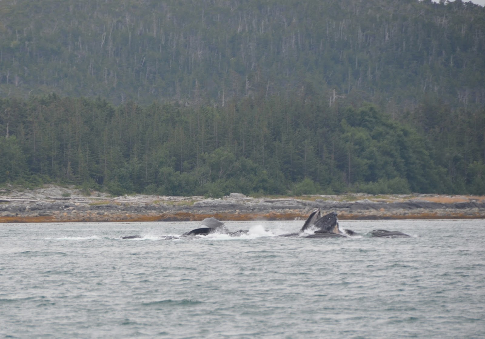 After they come up, they swam around, blew their spouts to get some air, and then took turns diving again.