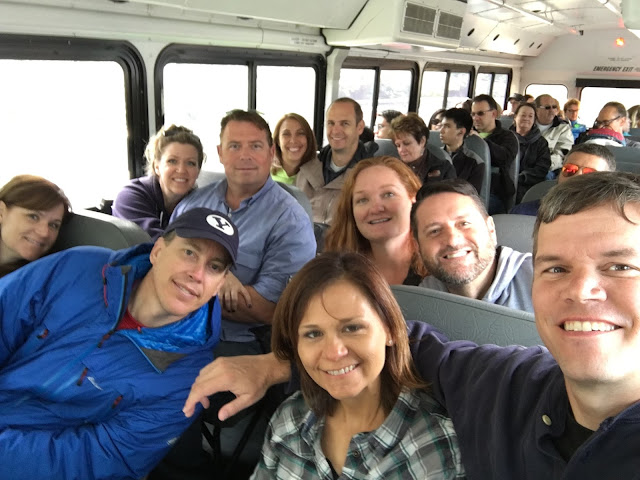 We all piled on the shuttle back to town.