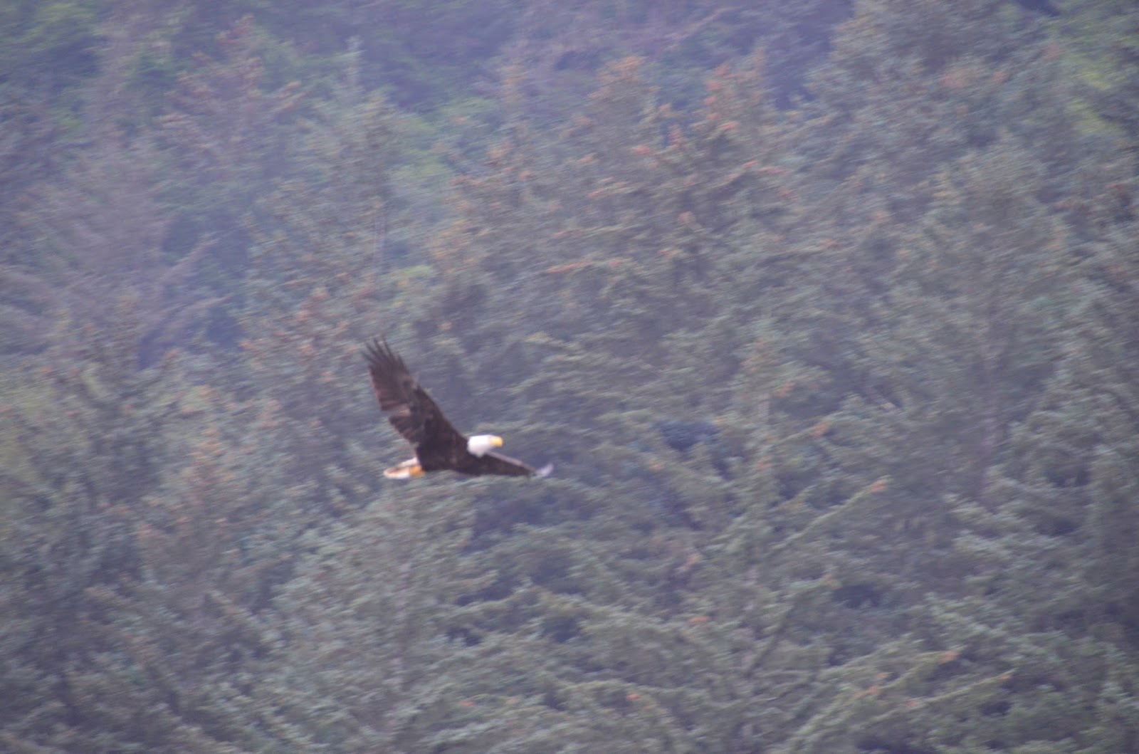 It was cool to see this bald eagle flying by and landing in a tree.