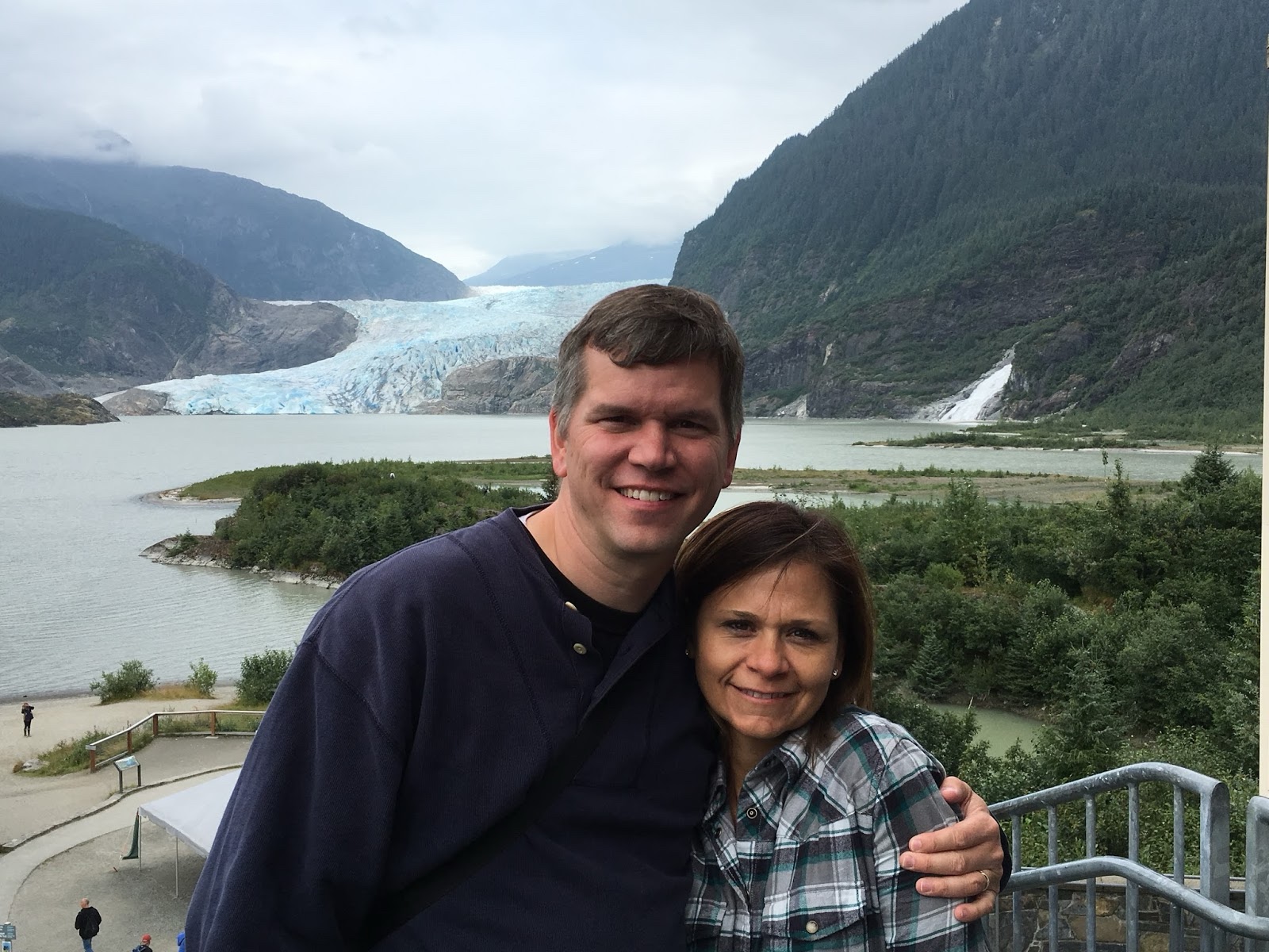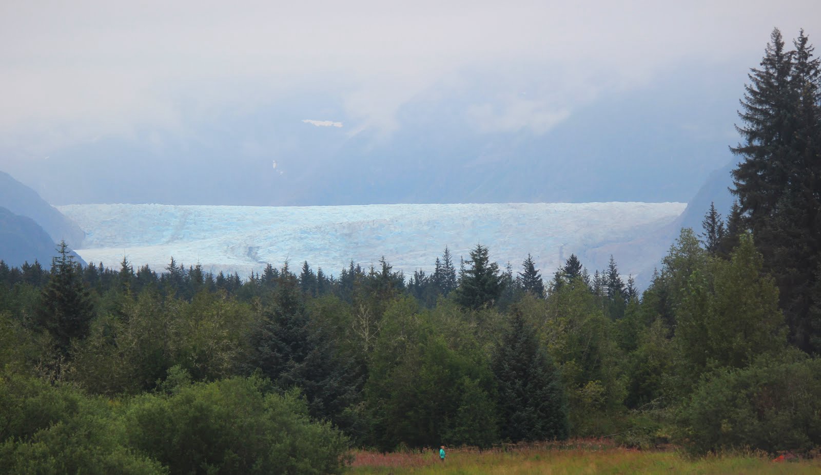 | Mendenhall Glacier over Juneau. And a random lady. |