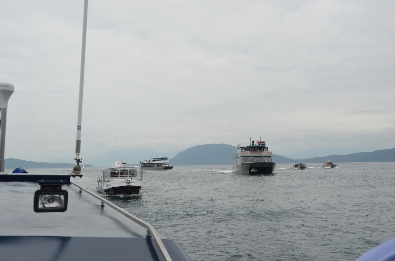 We weren't the only ones watching. Boats could not approach closer than 100 yards to the whales (though, of course, if they approached you, you could stay put and let them).
