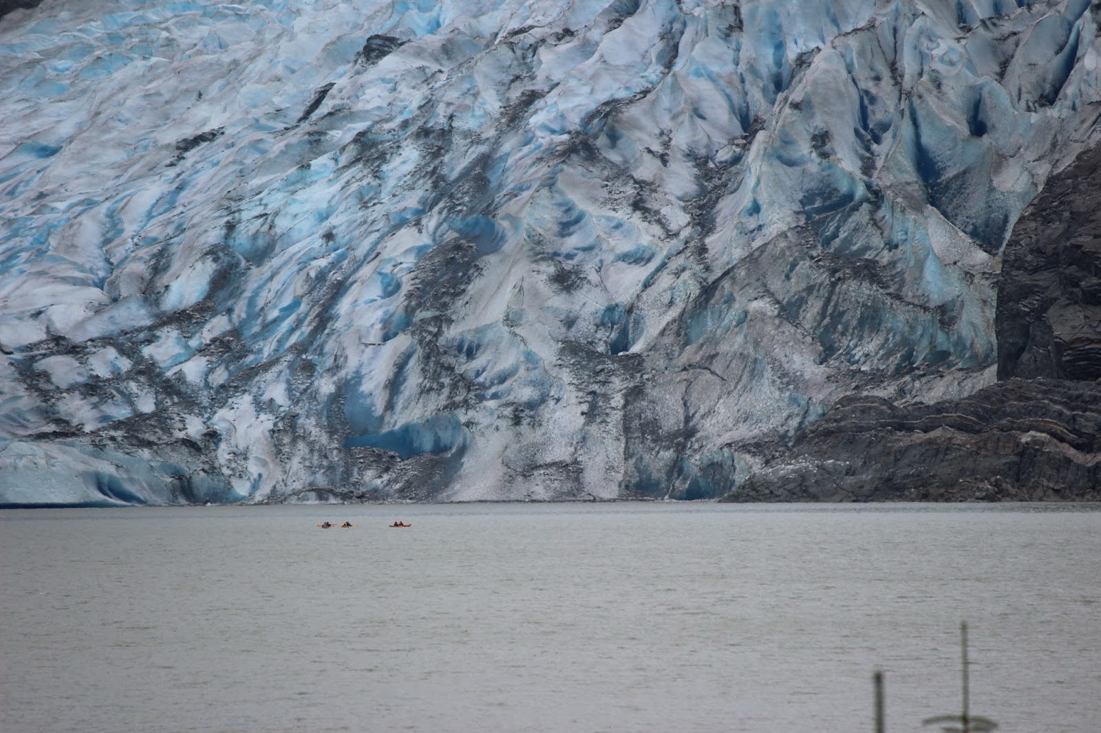 Here you can see that there are some people kayaking near the base of the glacier. It's big.