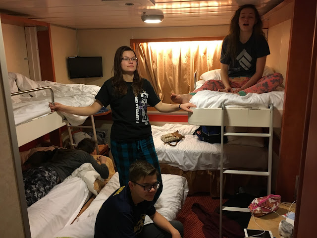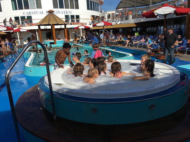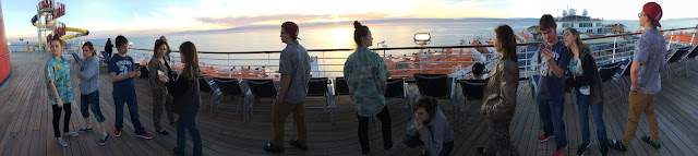 That night we watched a comedian tell about how things were when he was a kid. He said, "It's great to see you kids on this boat. When I was a kid, we didn't go on the boat. I'm not saying, 'When I was a kid, they didn't have boats!' They had boats. We just weren't on them." And he went on to talk about all the dangerous stuff we used to do: jumping off of the roof into a 4-foot above-ground pool; bike jumps without pads or helmets, and so on. I remembered a lot of that, so it was pretty funny to me, and he kept it pretty clean.