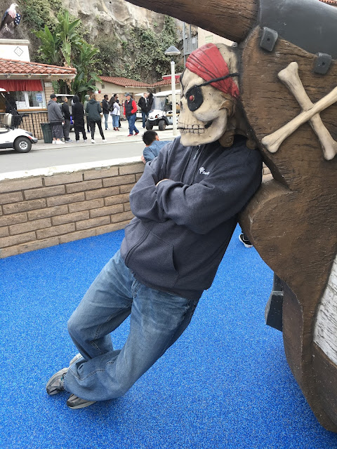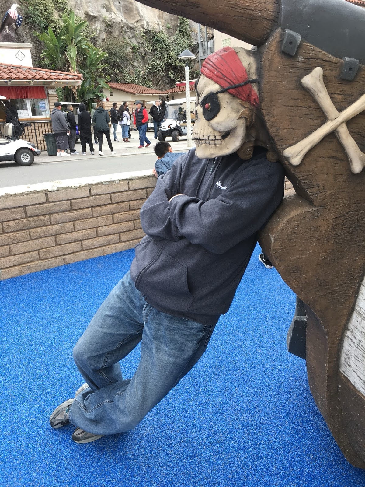I saw this pirate ship in a playground, with a skull off the bow. So I leaned up behind it.