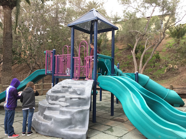 We came across a playground, and decided to play "Groundies." Everyone gets on the play structure, and the person who is "it" is on the ground and tries to touch them. They can go on the structure, too, but only with eyes closed (careful not to knock out their teeth). Others can sneak across the ground, too, but if the one who's "it" calls "Groundies!" while they're on the ground, they're "it."