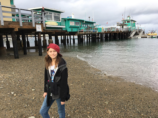 We shopped along the waterfront and Sienna looked for a pretty rock. (Erika is up on the pier in this picture, too, which I didn't know when I took it).