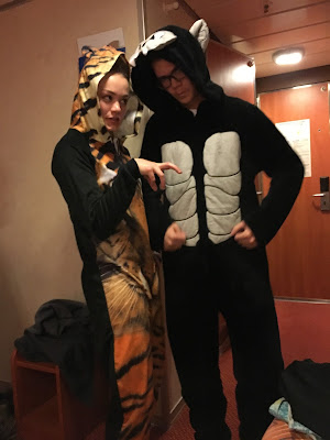 That night Erika and Jared decided to roam the decks in their tiger and Harambe outfits, respectively.