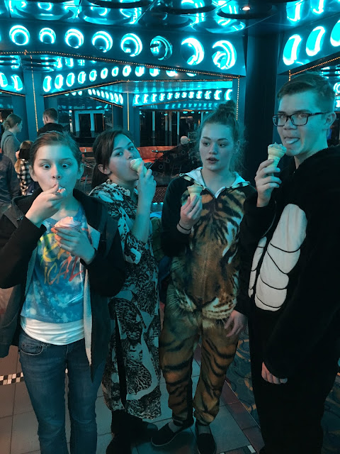There was much eating onboard. There was a burger bar, pizza bar, soft serve ice cream machine, and then the breakfast and lunch buffets and a sit-down dinner with 3 courses and all you want to eat. The main trick was trying to muster up enough hunger to enjoy eating again. Life's tough.