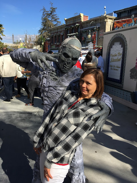 The haunted house there has been turned into a Walking Dead exhibit. Linette's not the biggest fan of zombies.