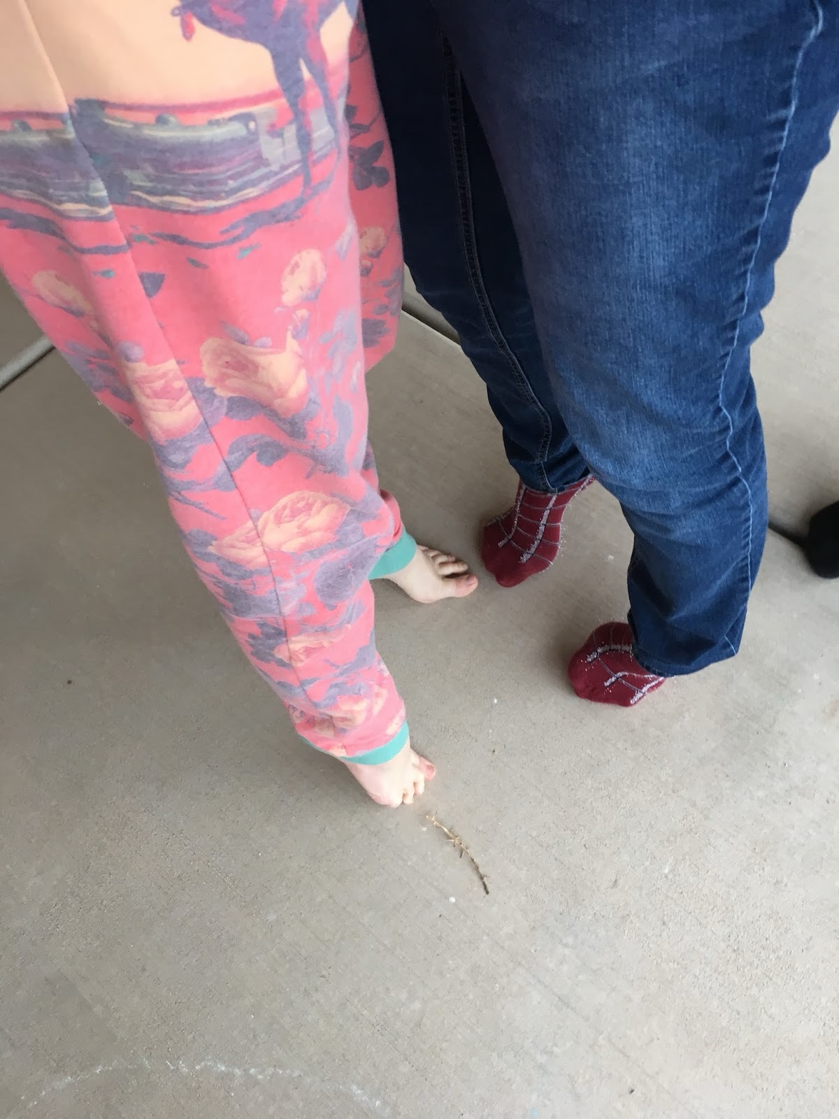 Jared and Kelsi looked at each other with an uneasy look that said, "She doesn't know!" (what "sleeping in" means, that is. :)