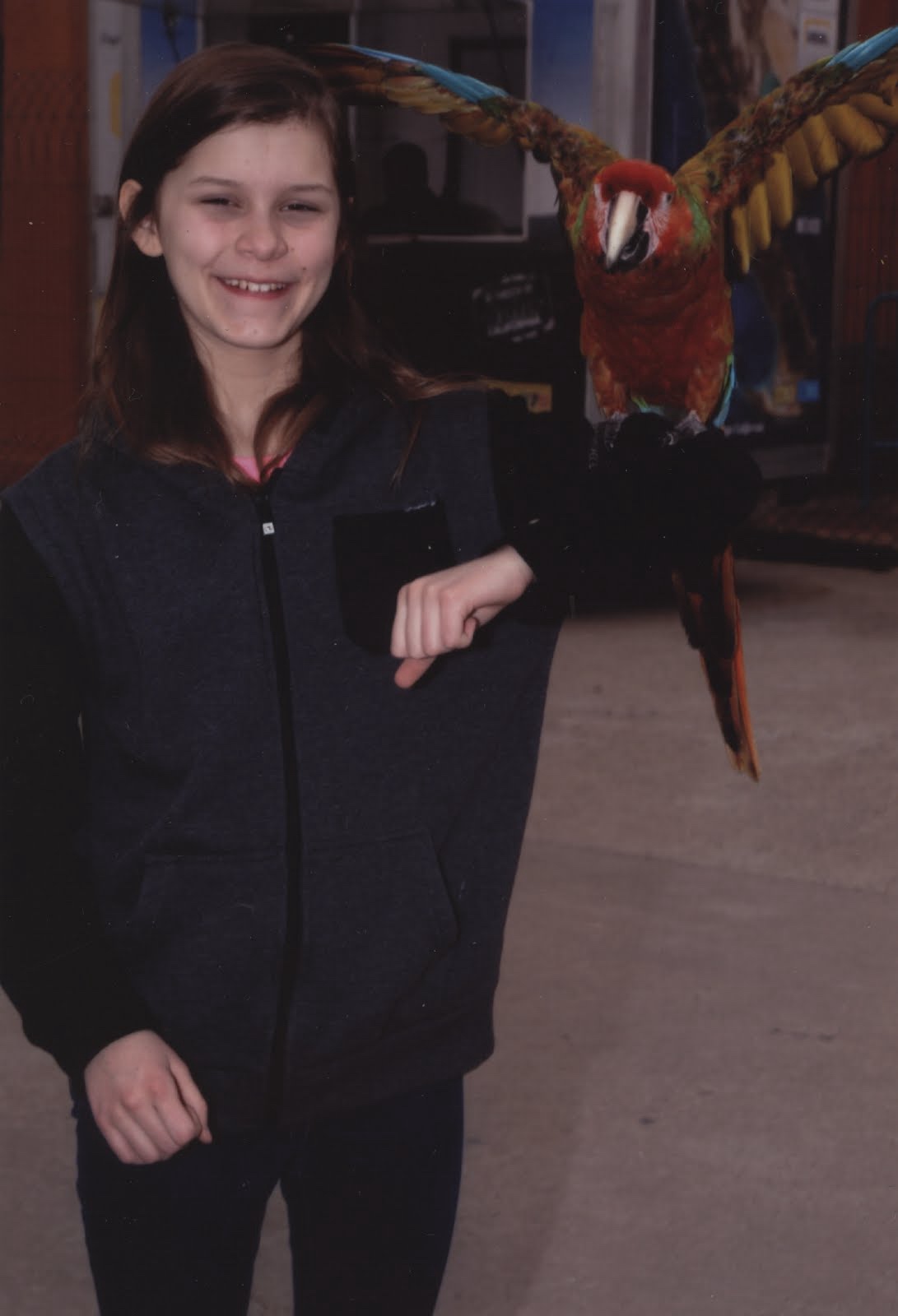 Sienna and I ran over to hold the parrots as we got off the ship.