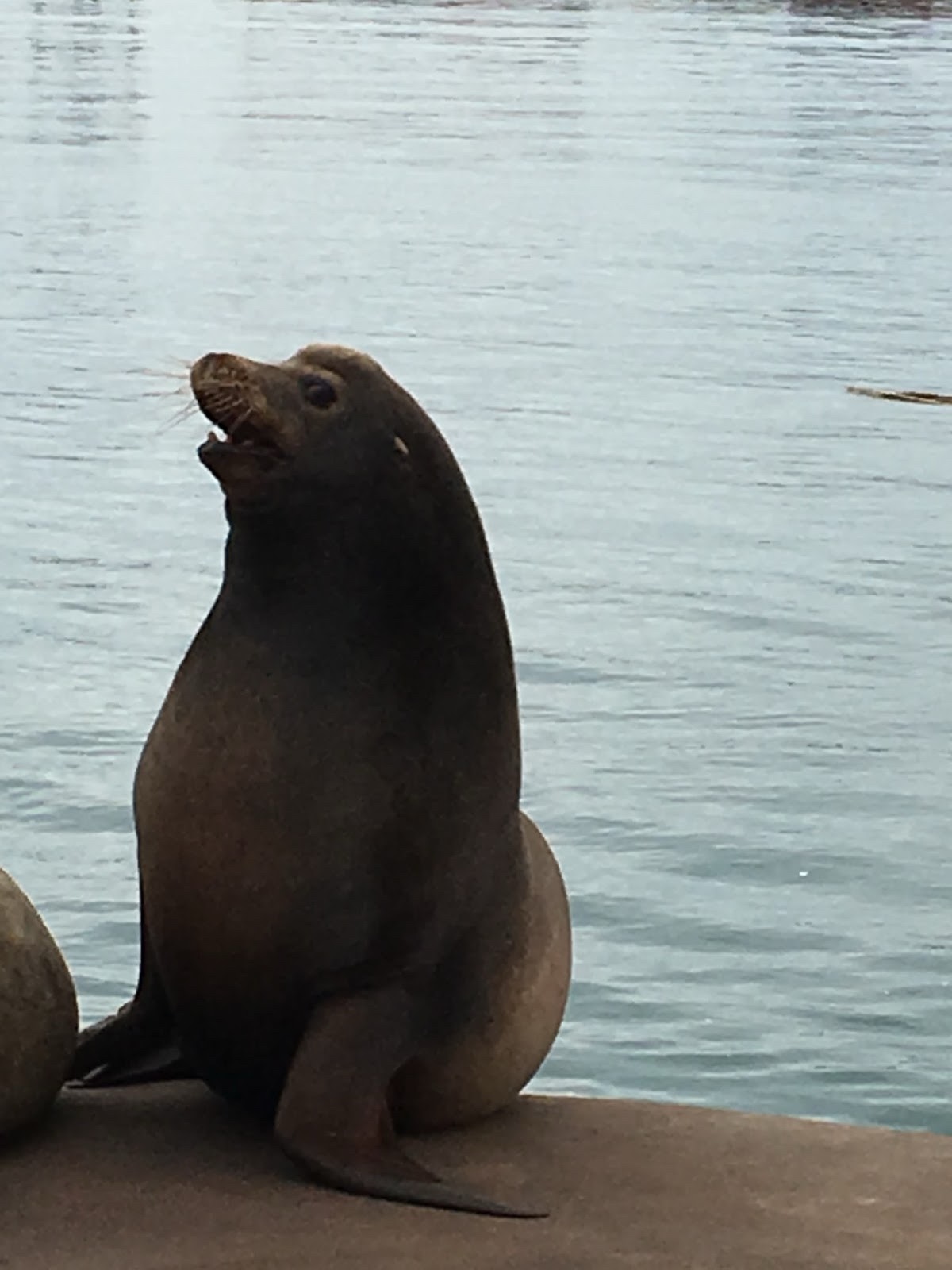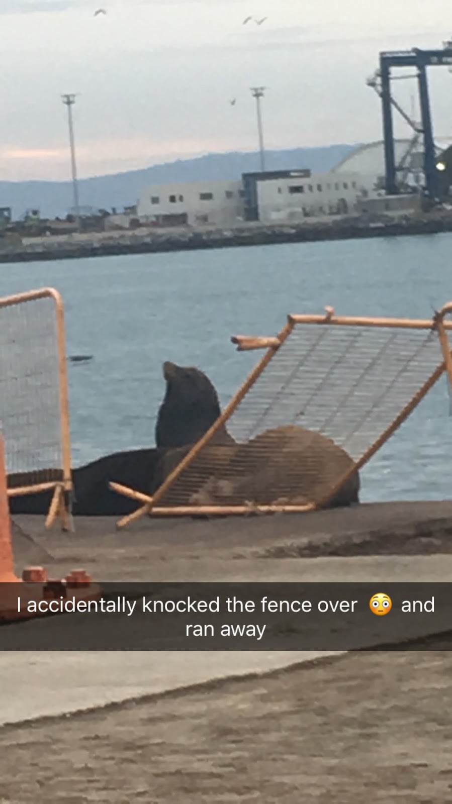 Kelsi just barely touched this one fence and it flipped over and startled the sea lions. Luckily none of them ran over and ate us or anything.