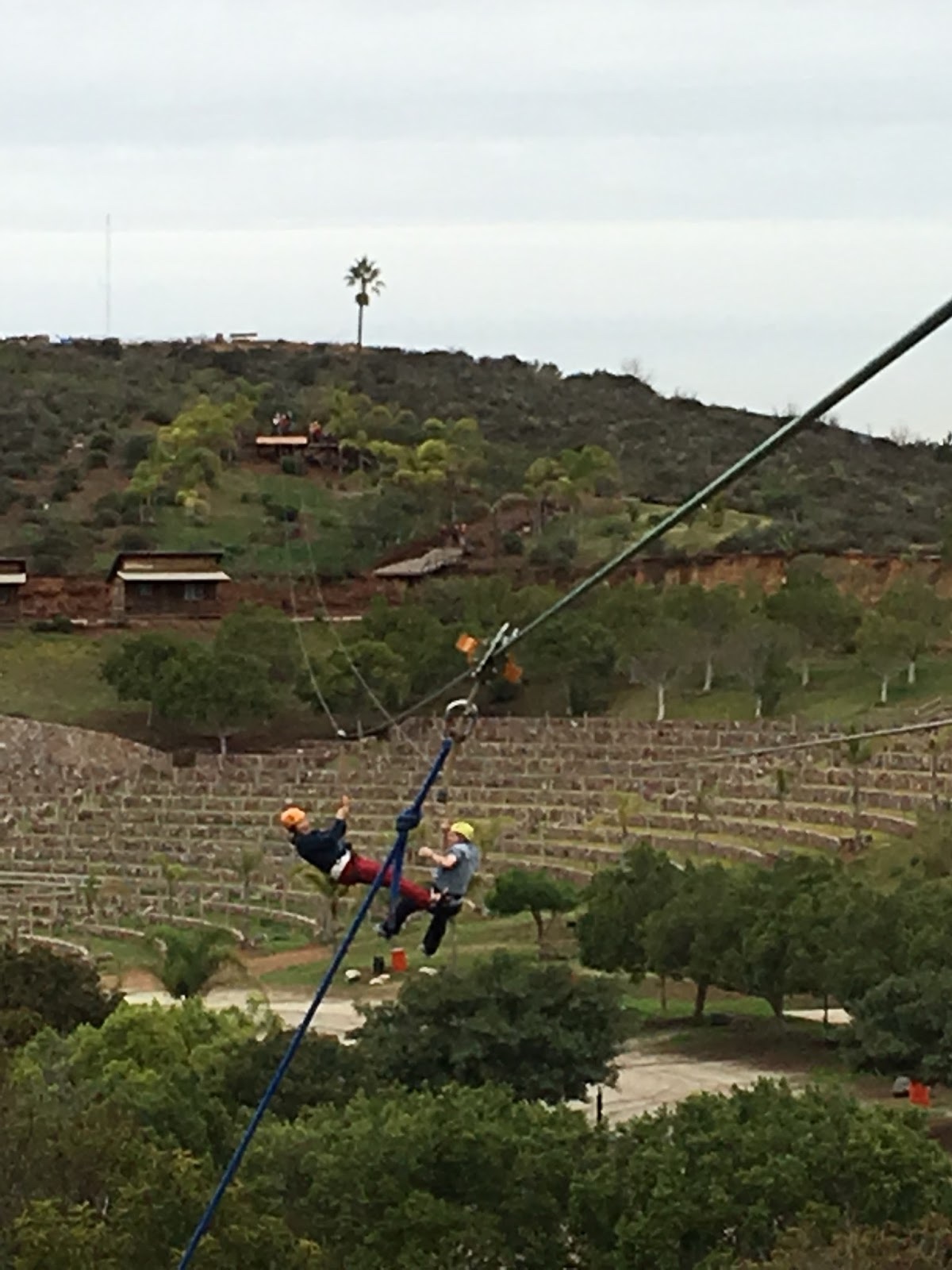 The last zip line was about a quarter mile long. In this picture you can't even really see where it ends up. It was long enough that most people had to double up in order to make it down.