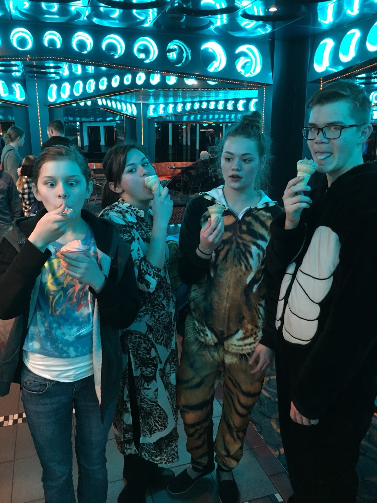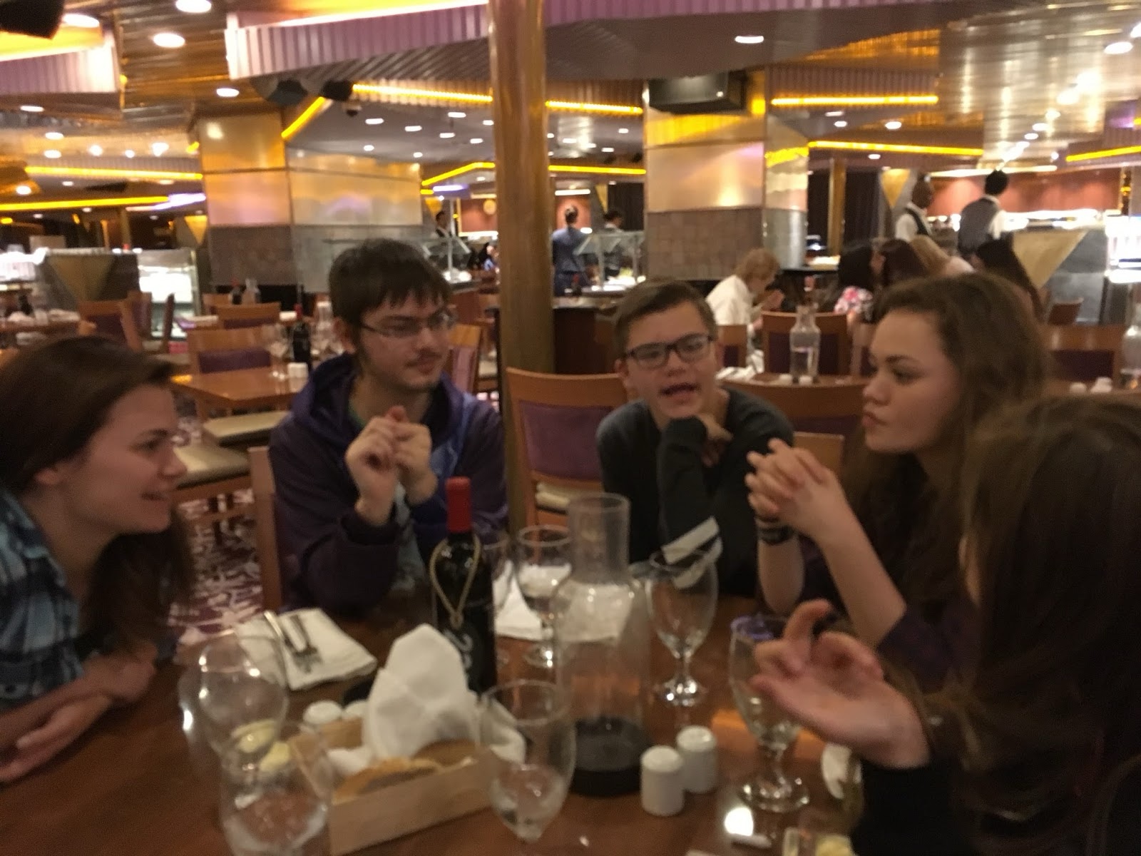 That night we had fun listening to music in the atrium while we waited for dinner.