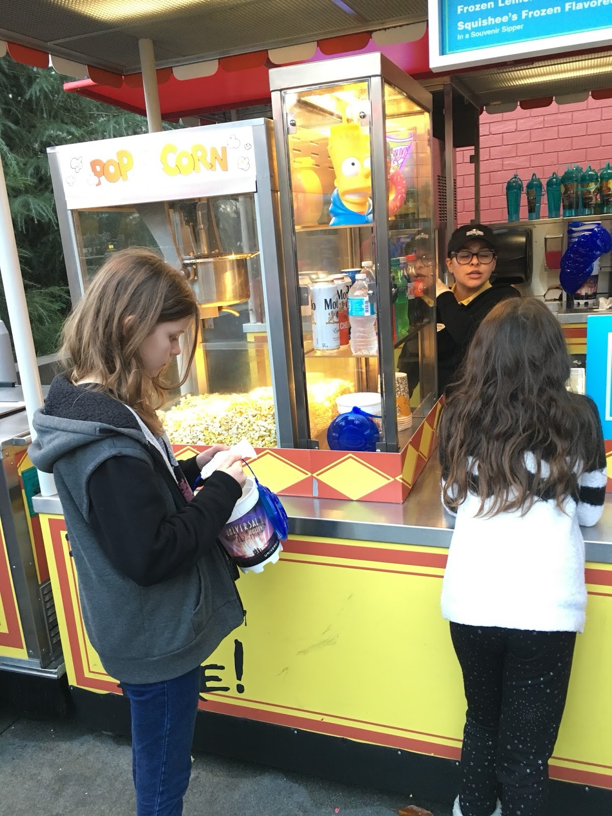 We took full advantage of the unlimited refillable bucket of popcorn.
