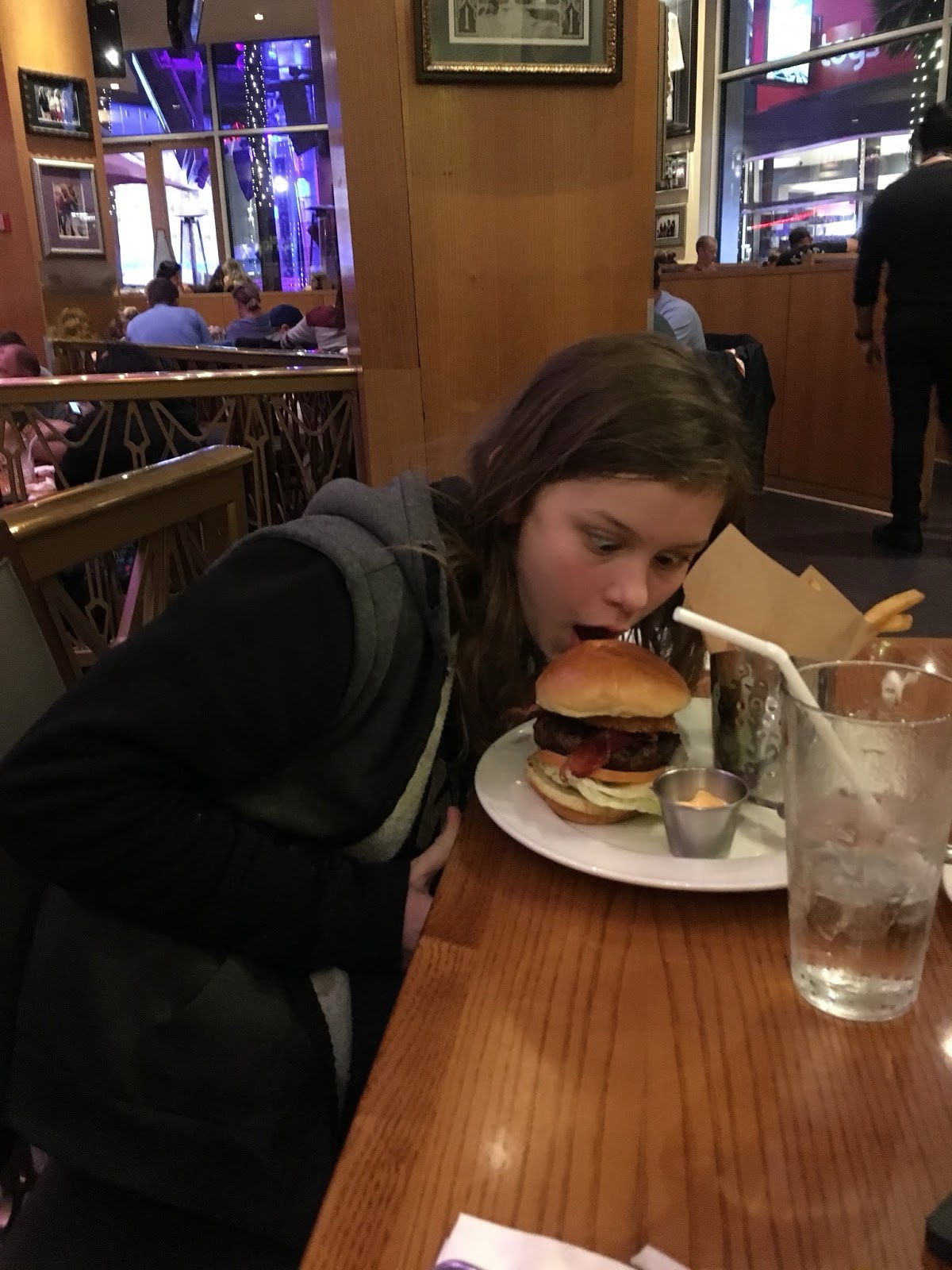 We had tasty burgers at the Hard Rock Cafe. Not sure how Sienna fit her mouth around this one.