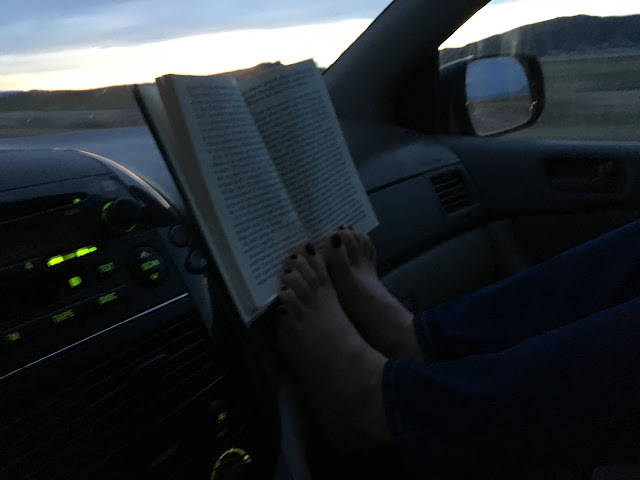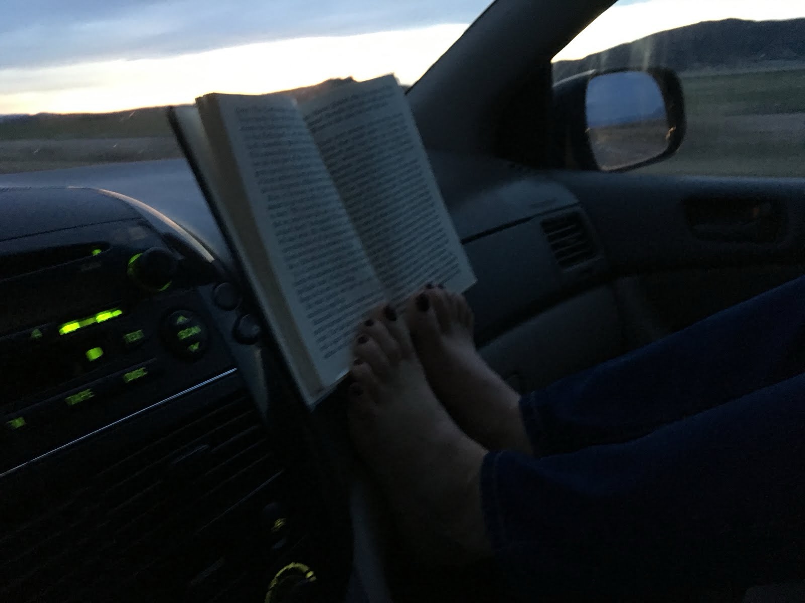 Linette read "Killing Lincoln" to me while I drove. It was an interesting book, and was in large print, which allowed Linette to employ a creative technique for holding the book.