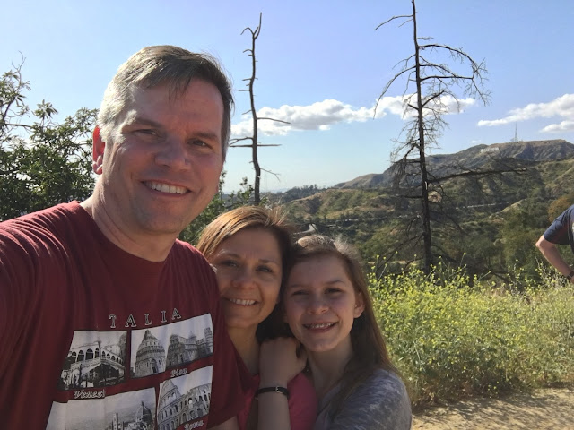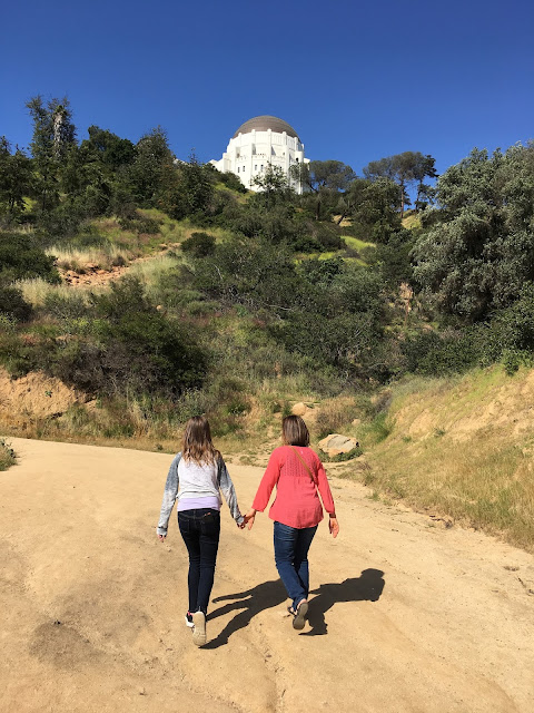 Saturday we drove to L.A. in time to get in a few hours at Universal Studios. But alas, it was a "black out" day, so our annual passes from January didn't work. So we instead decided to go up to the observatory near the Hollywood sign. As we turned to drive up the mountain, Sienna said the path looked fun to walk along, so we got out and had a beautiful hike.