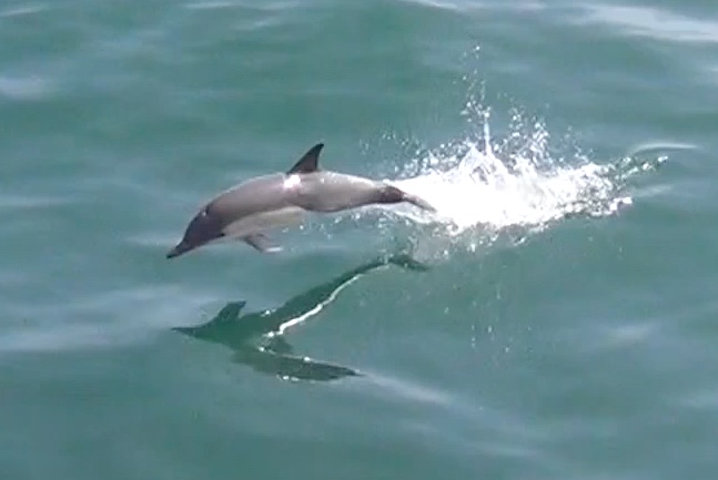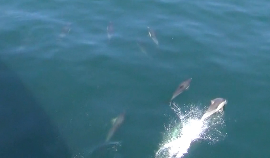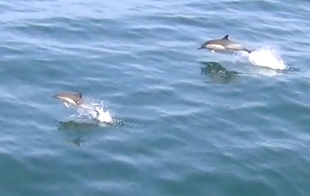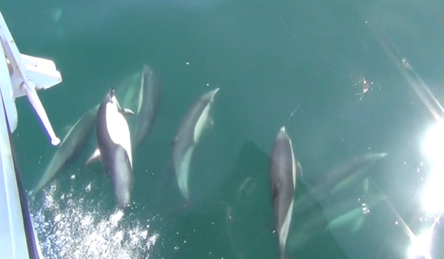 We didn't see any whales on the tour, but we saw a whole bunch of dolphins! These little ones came in groups to come play in the waves of the boat.