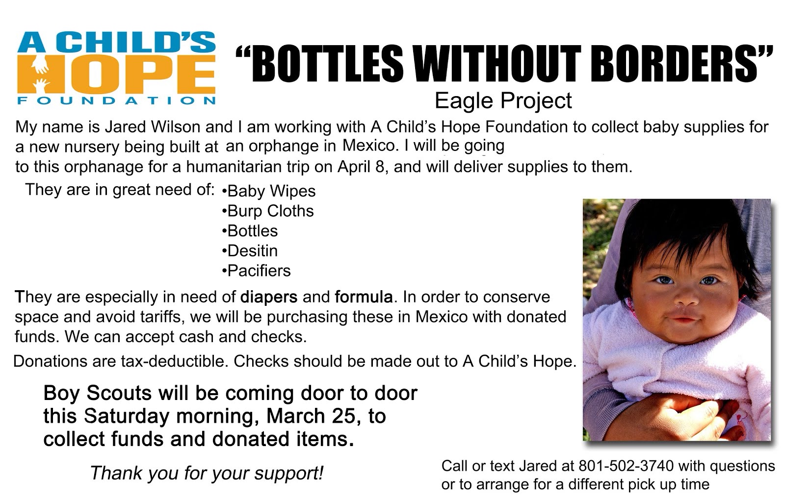 We tried to come up with a slogan for the project, but "Diapers Over the Wall" seemed so wrong. Ultimately we settled on "Bottles Without Borders."