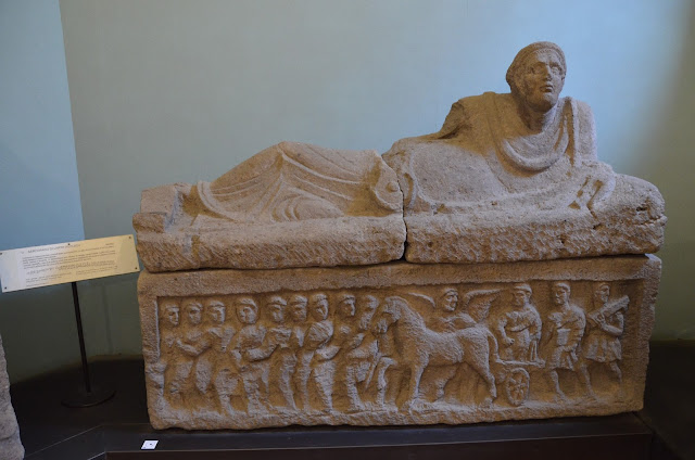 The museum also had some of the sarcophagi from the tombs, which originally held the bodies. They had a likeness of the person on top, and cool scenes on the front.