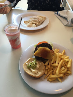 We hadn't had any lunch (who has time to eat when there's so much to see?) so we had a "snack" back on the ship (burgers, fries, crepes, and a smoothie). Dinner was two hours later.